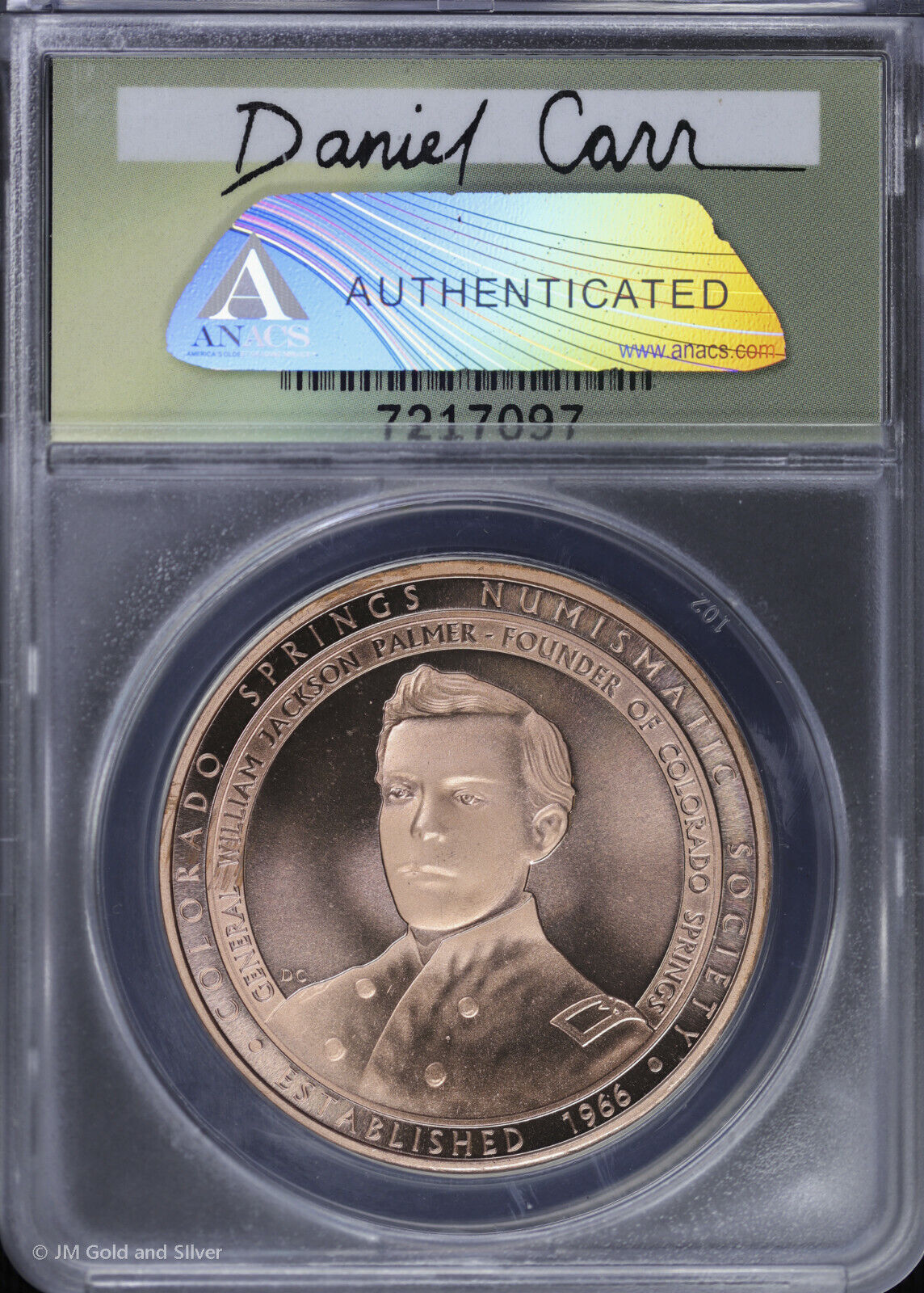 2016 Copper Medal Colo Springs Numismatic Society 50th ANACS MS 69 Cameo | Dan Carr