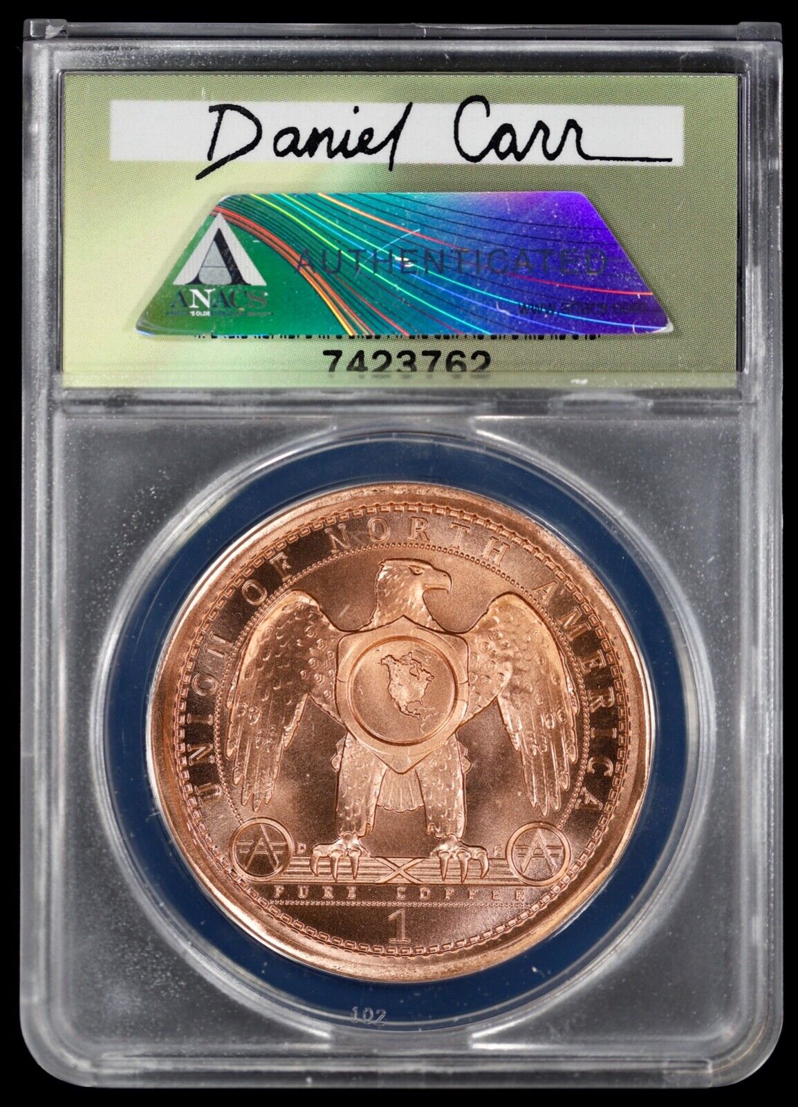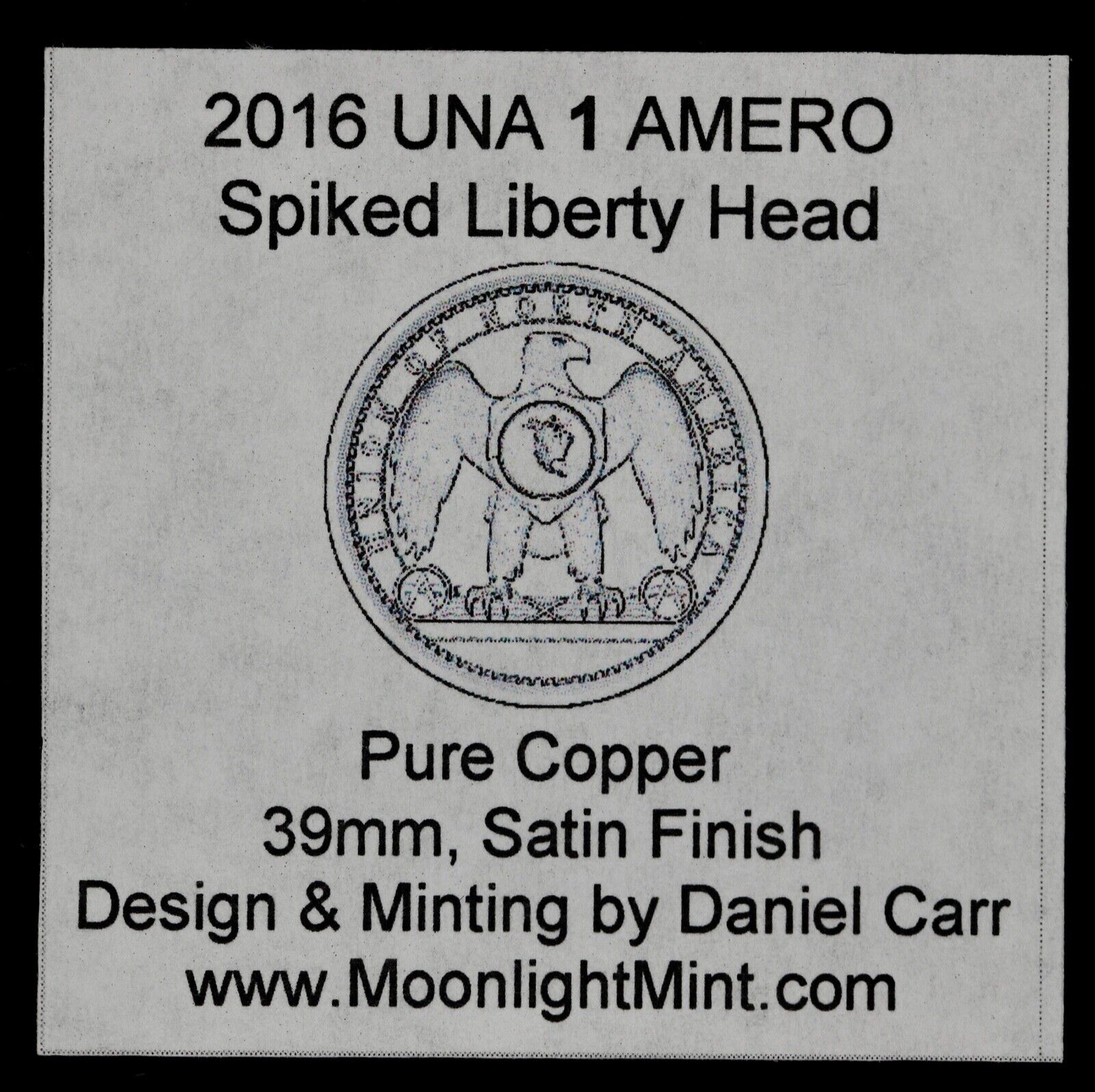 2016 D Token Dan Carr Concept 1 Amero Spiked Liberty Head Copper ANACS MS70 RED