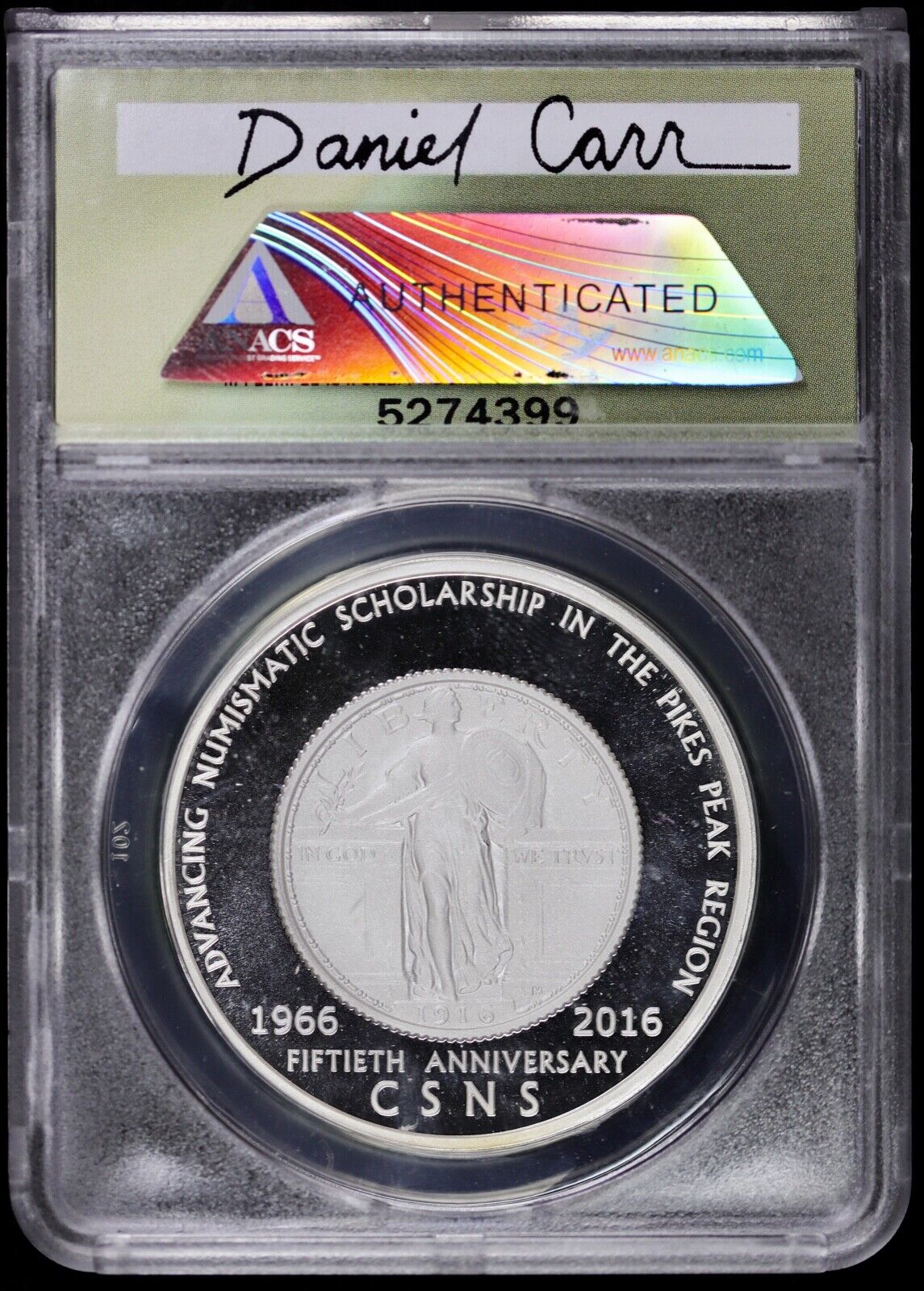 2016 Medal Dan Carr Moonlight Mint CSNS 50th 1 oz Silver PL ANACS MS67 DCAM