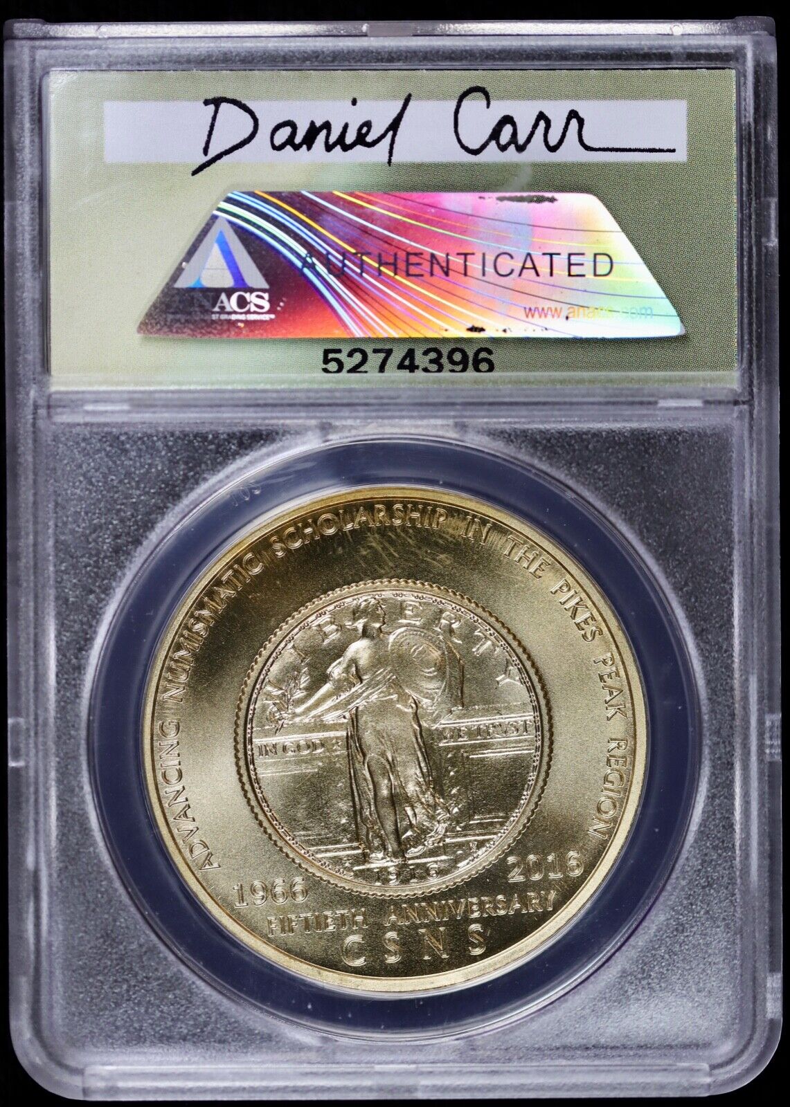 2016 Medal Dan Carr Moonlight Mint CSNS 50th Brass Plain Edge Satin ANACS MS69