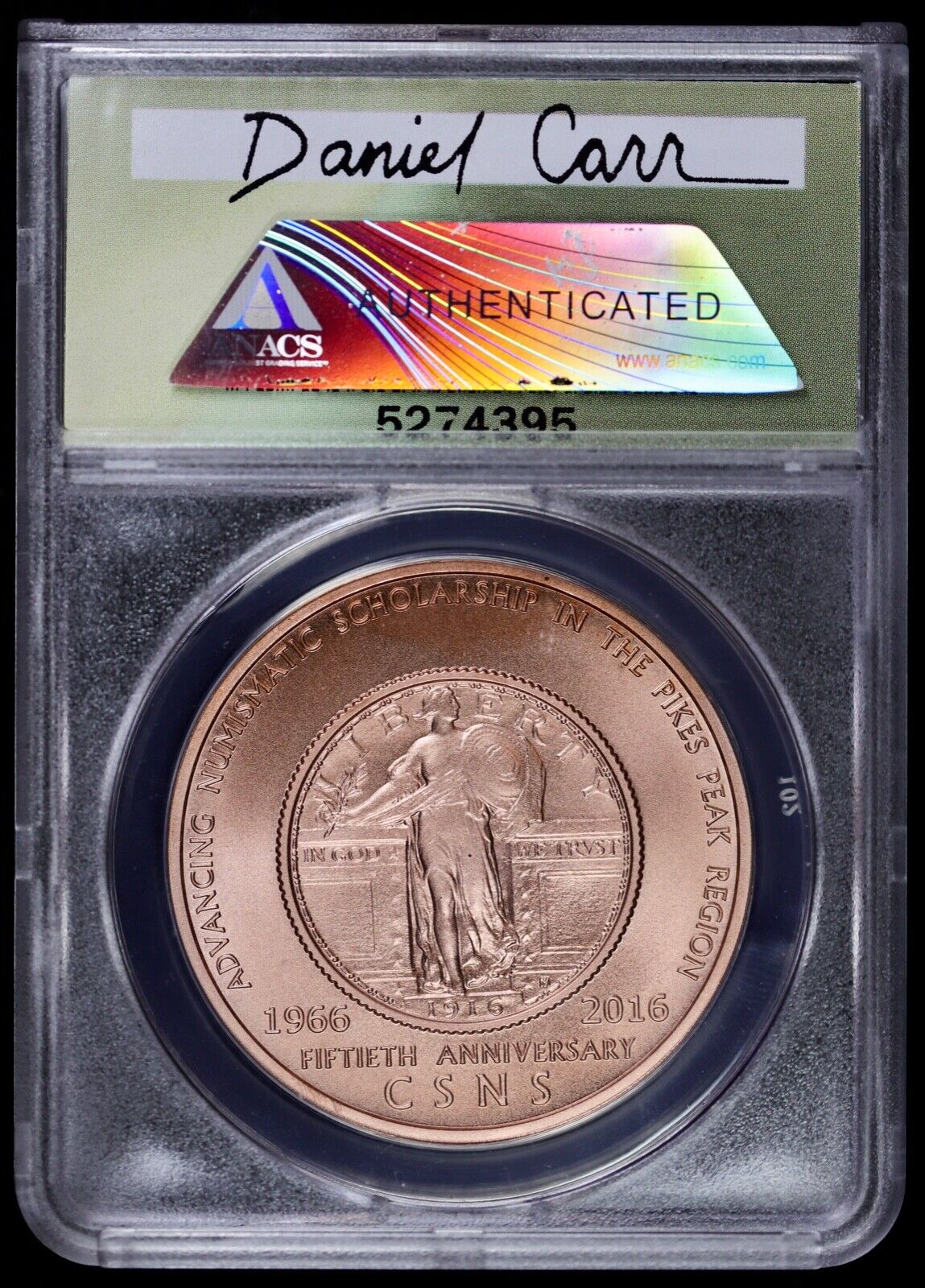 2016 Medal Dan Carr Moonlight Mint CSNS 50th Copper Plain Edge ANACS MS69 Red
