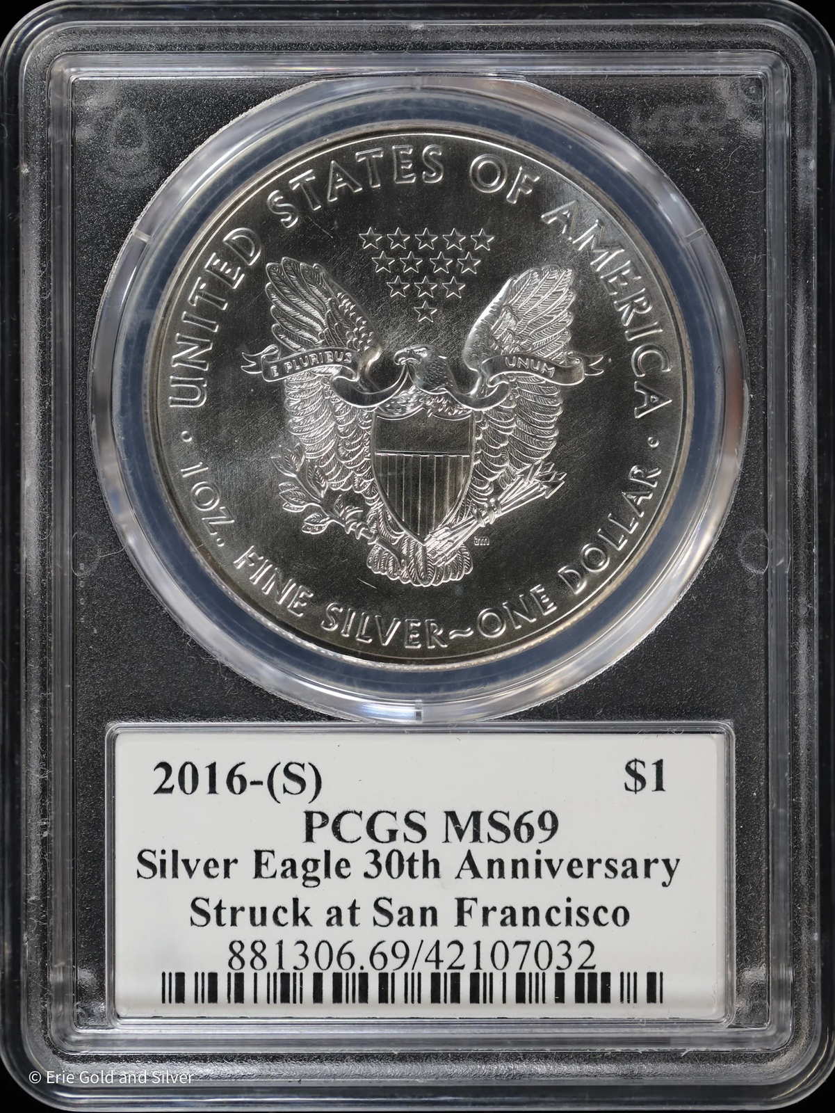 2016-S $1 American Silver Eagle PCGS MS 69 | Struck at San Francisco | Peed Sign