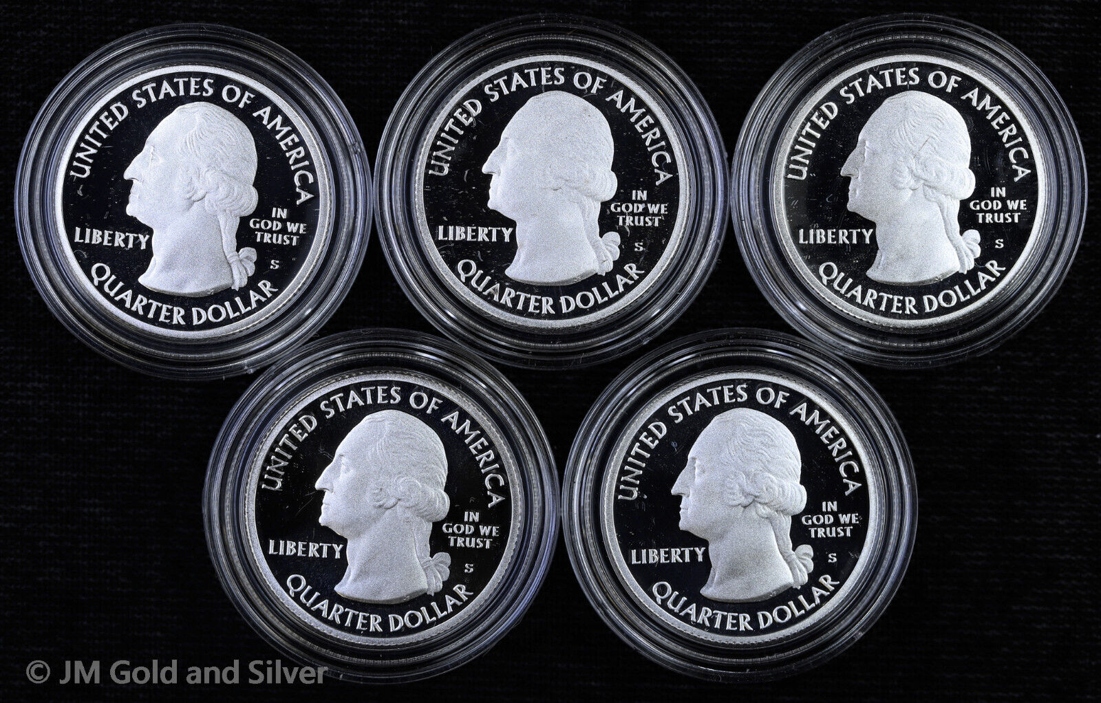 2016-S 25C 90% Silver Proof ATB Quarter 5pc Set w/ US Mint Capsule