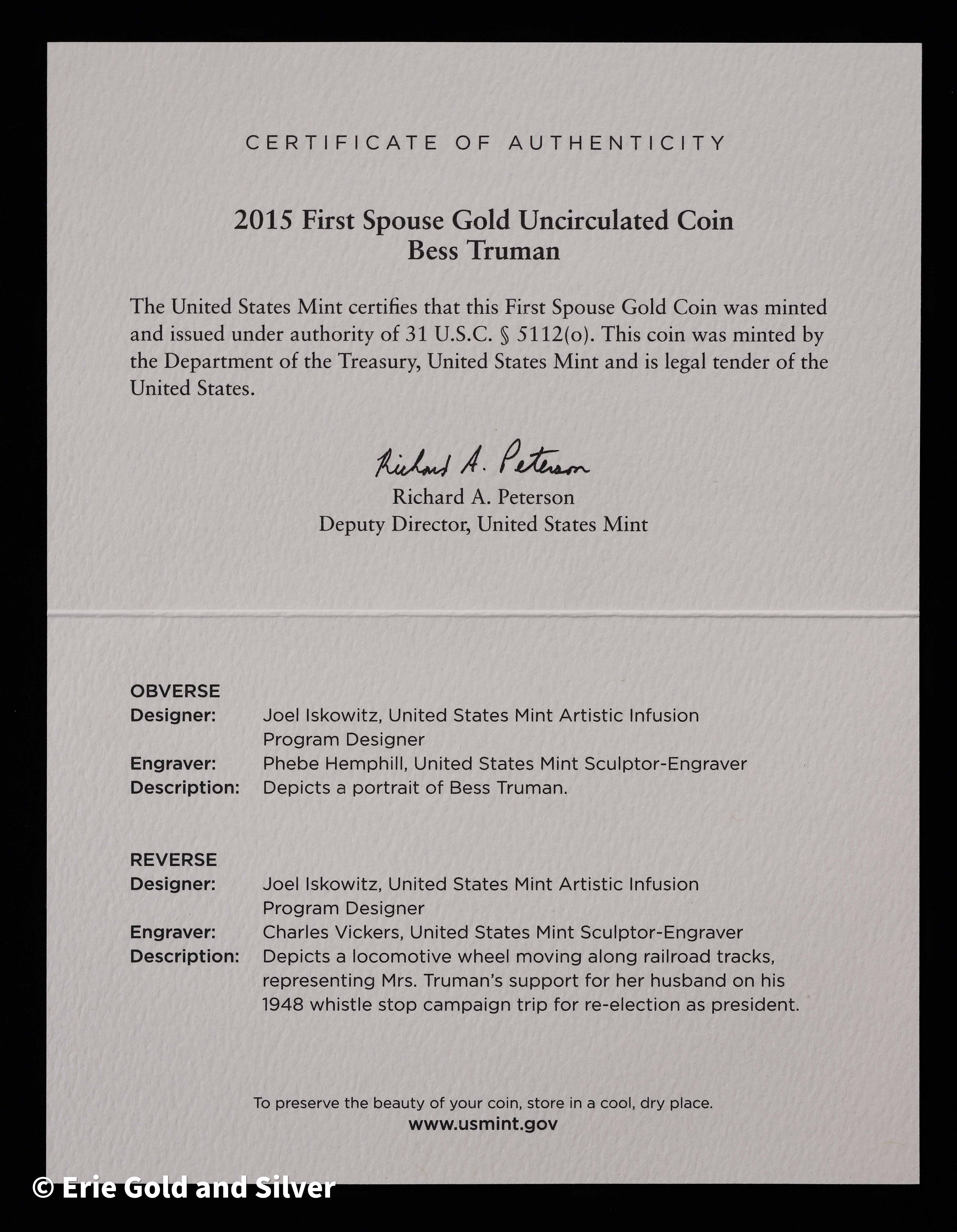 2016-W $10 First Spouse Bess Truman 1/2 oz Gold Coin in OGP