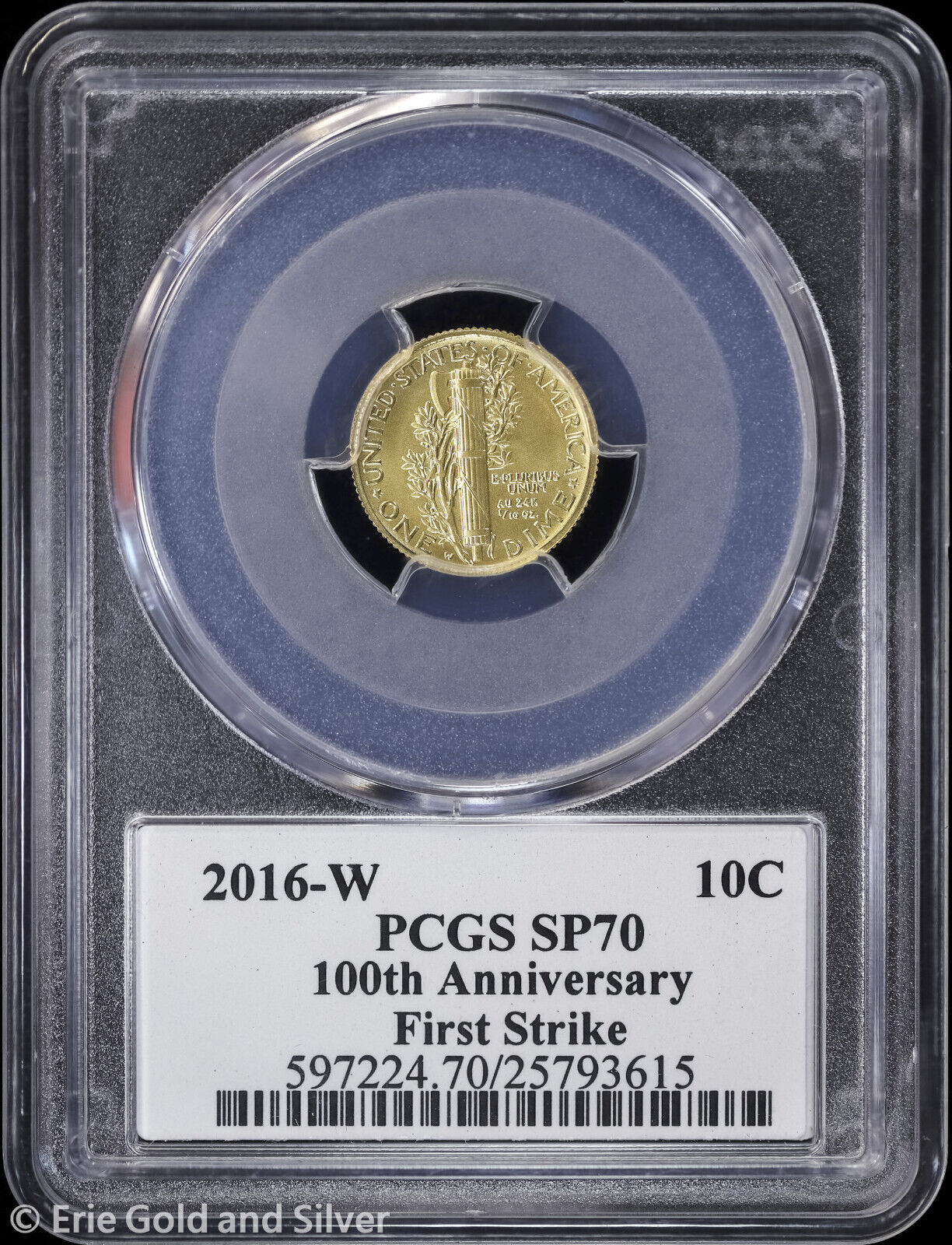 2016-W 10C 1/10 oz 24K Gold 100th Anniv Mercury Dime PCGS SP 70 | First Strike
