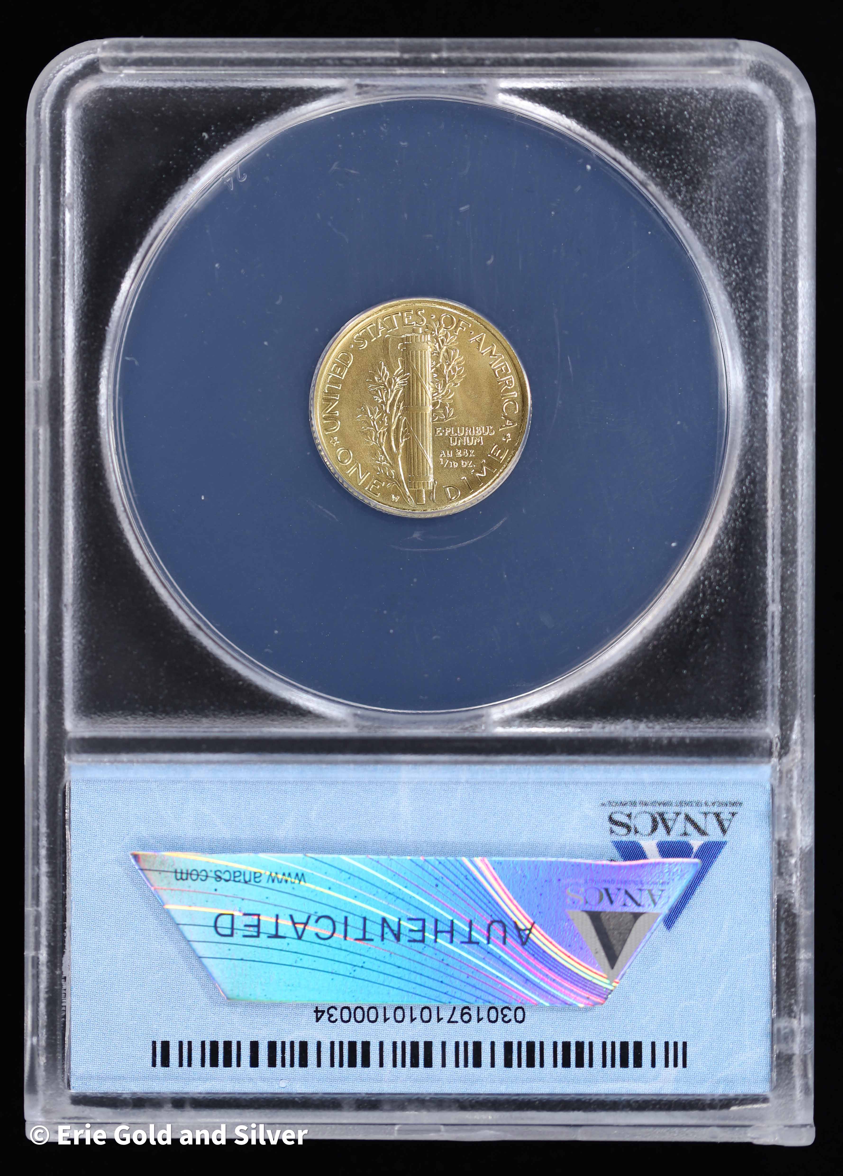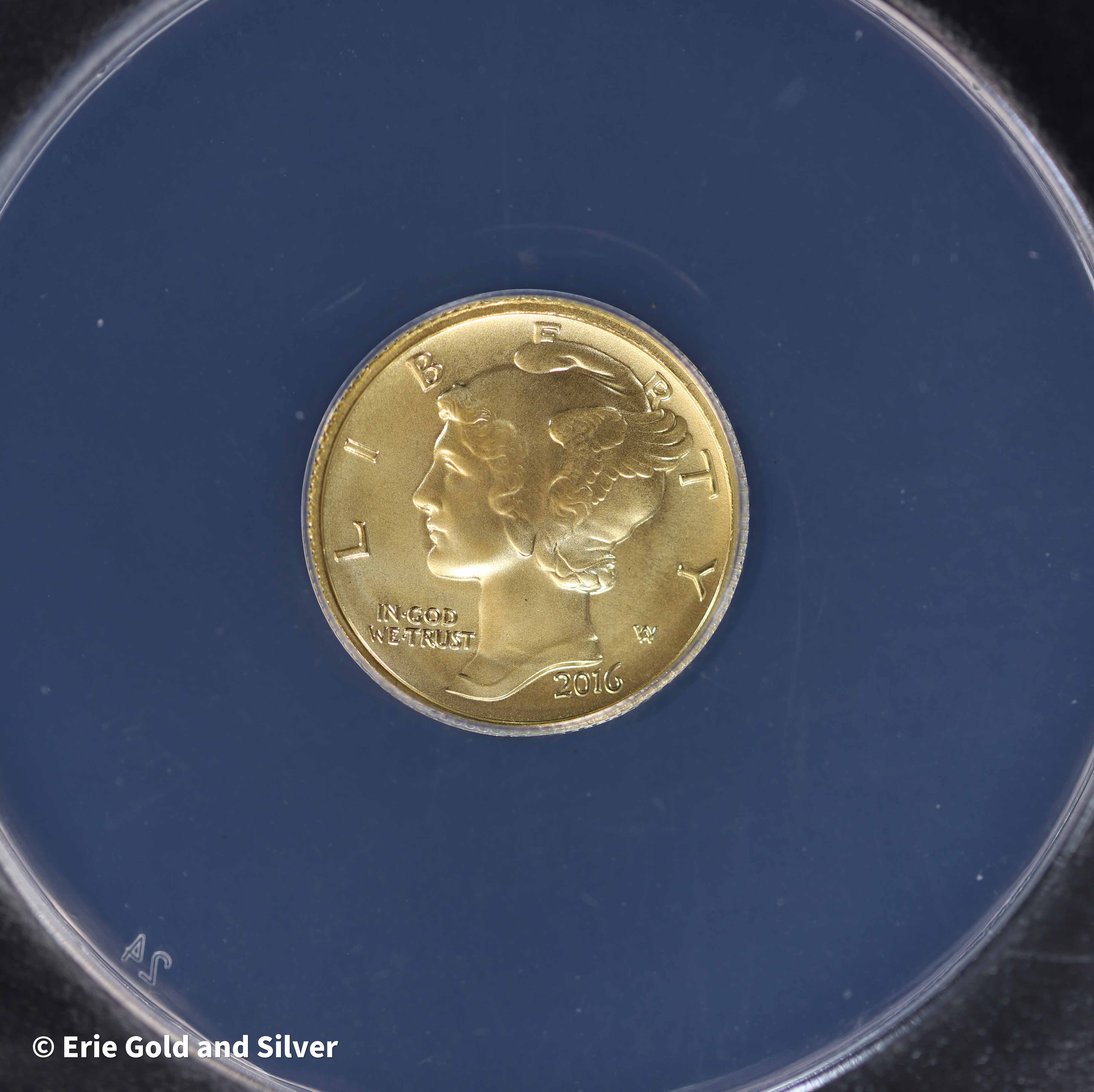 2016-W 10c 1/10 oz Gold Mercury Dime | ANACS SP 70