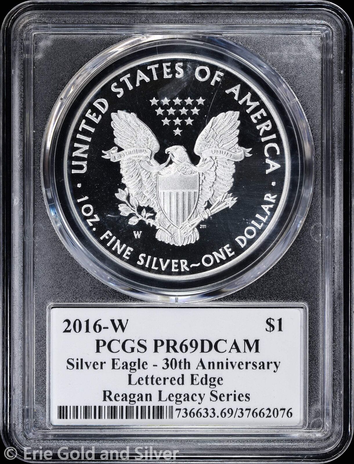 2016-W Proof $1 American Silver Eagle PCGS PR 69 DCAM | Lettered Edge Reagan