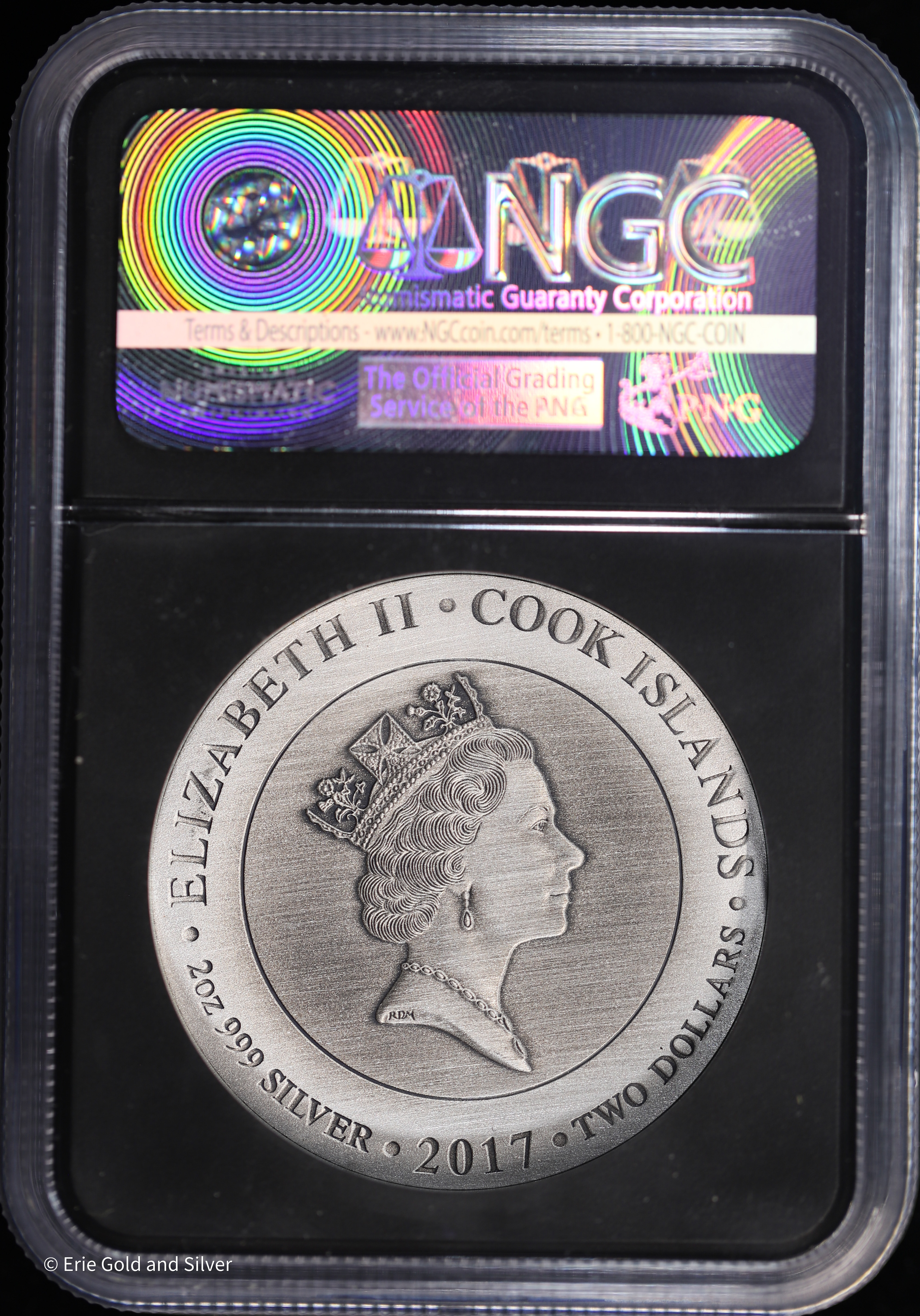 For sale is a 2017 $2 Ares Gods of Olympus 2 oz Silver - Gods and Goddesses Series from Cook Islands .999 silver. Graded / Certified by NGC at MS 70 Antiqued.