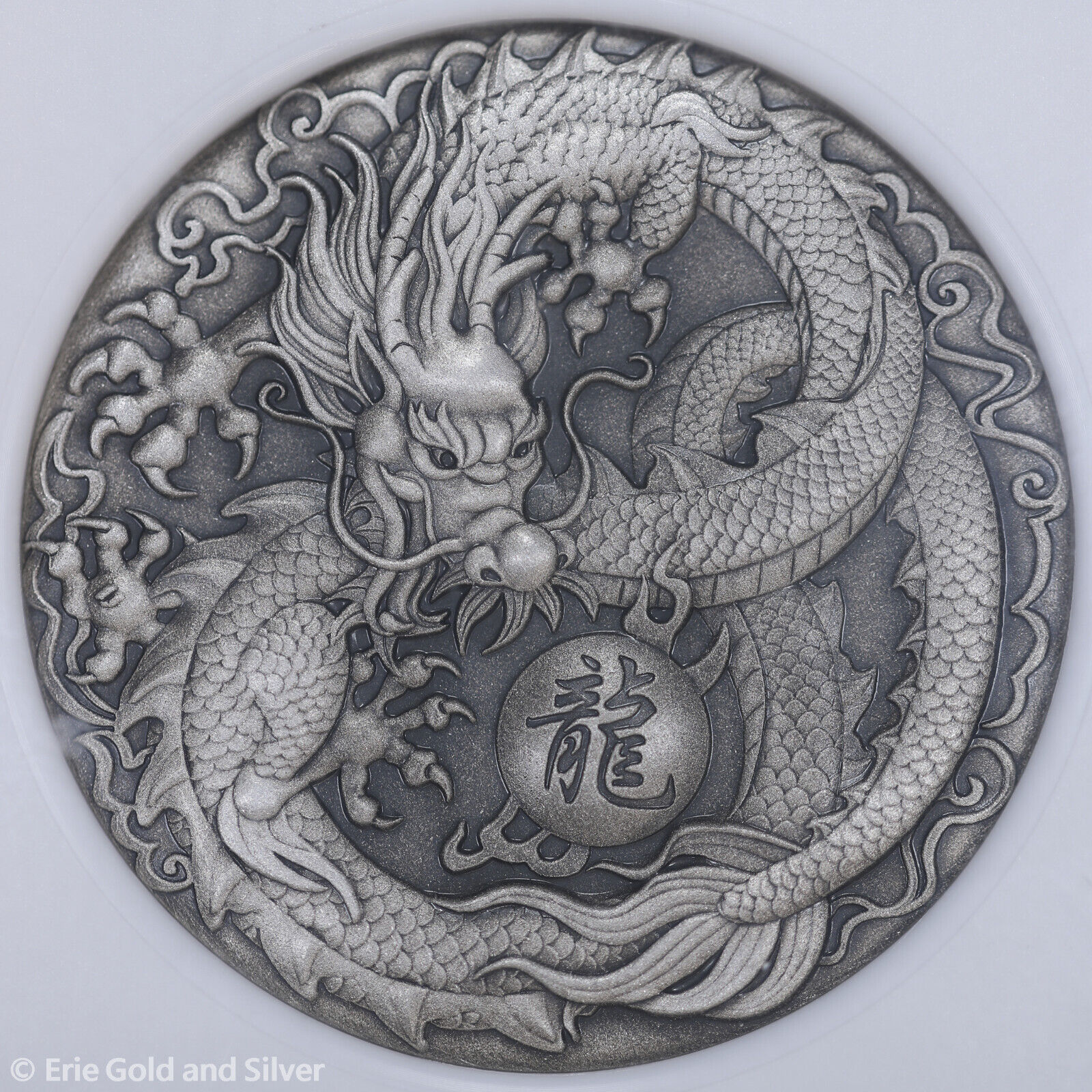 2017 $2 Tuvalu 2 oz Silver High Relief Dragon NGC MS 70 Antiqued | Early Release