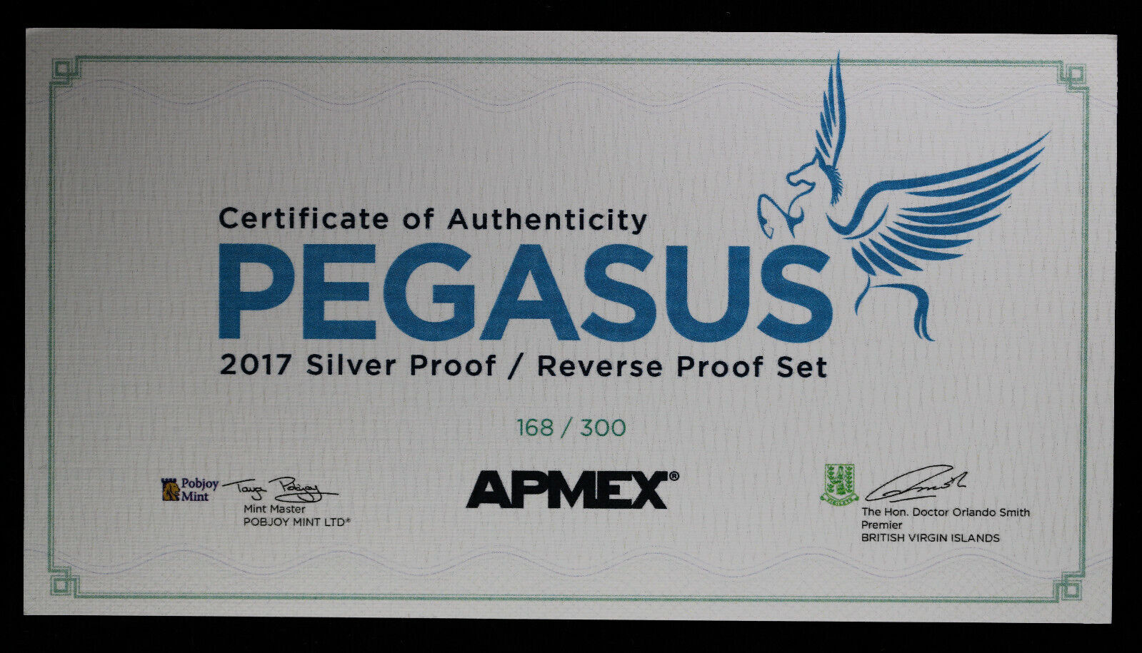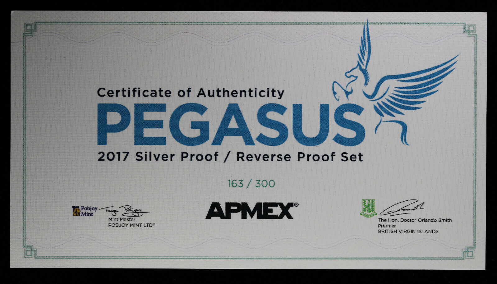 2017 BVI 2-Coin Silver Pegasus Proof Reverse Proof Set w/ Box & COA - Only 300