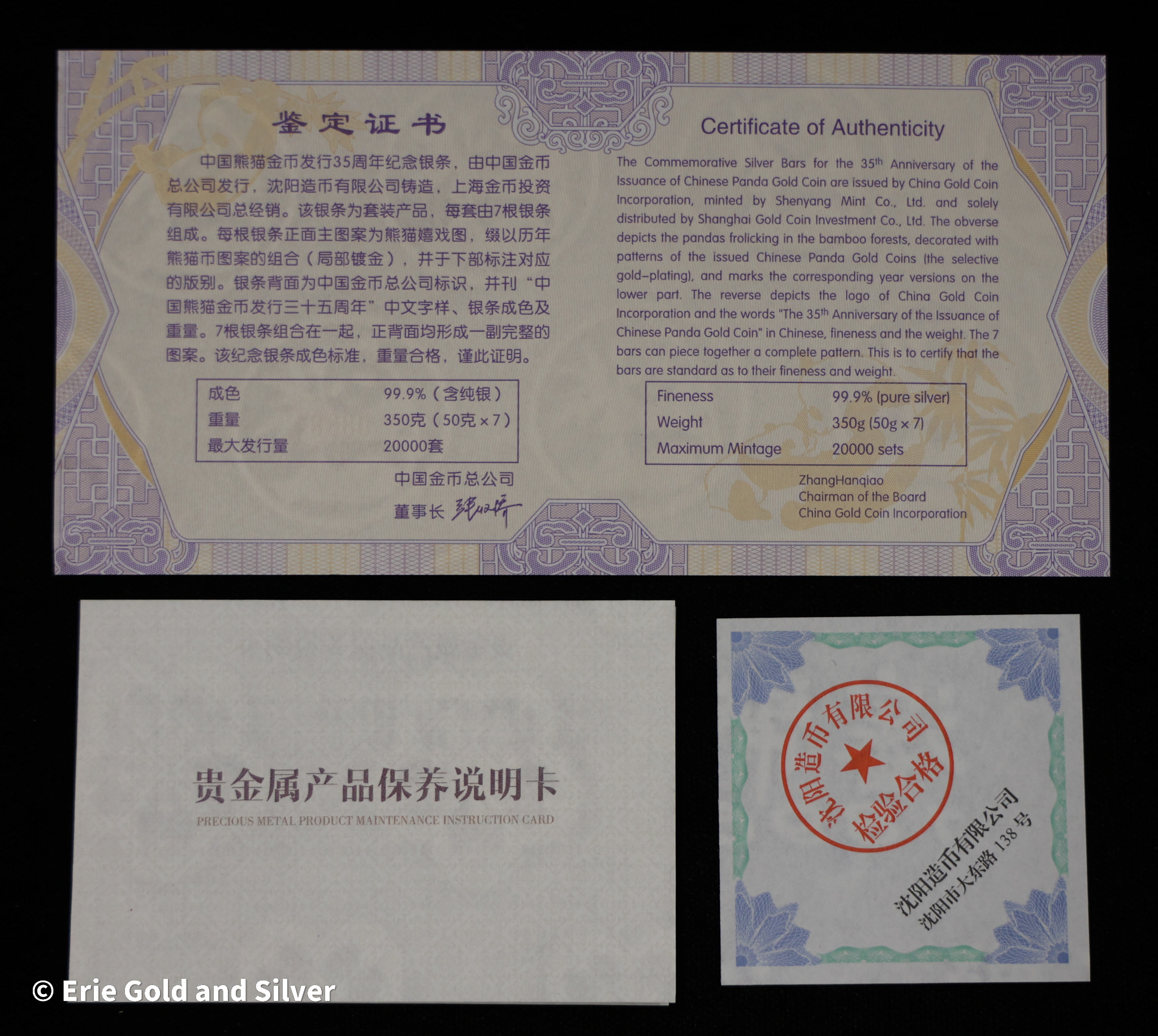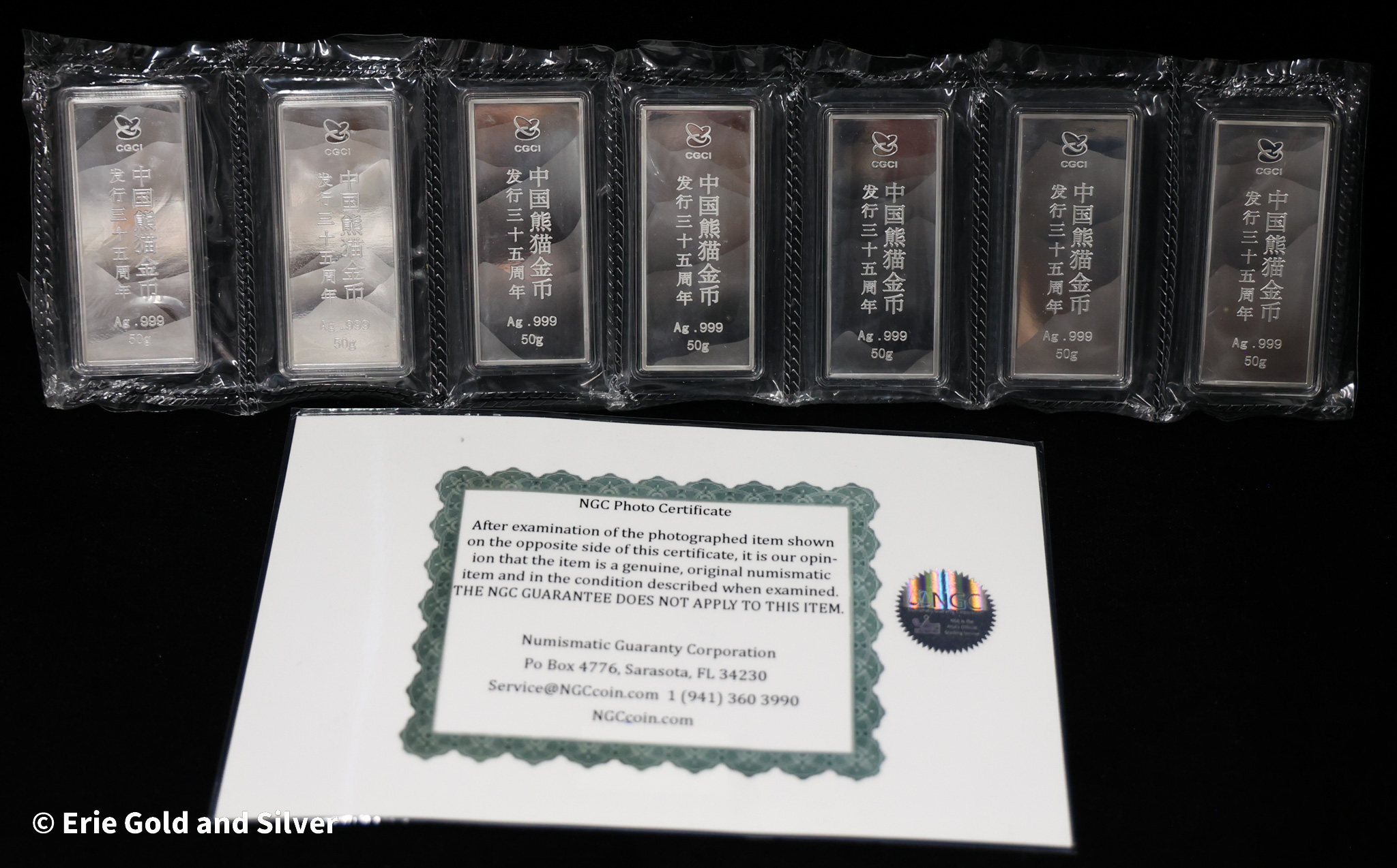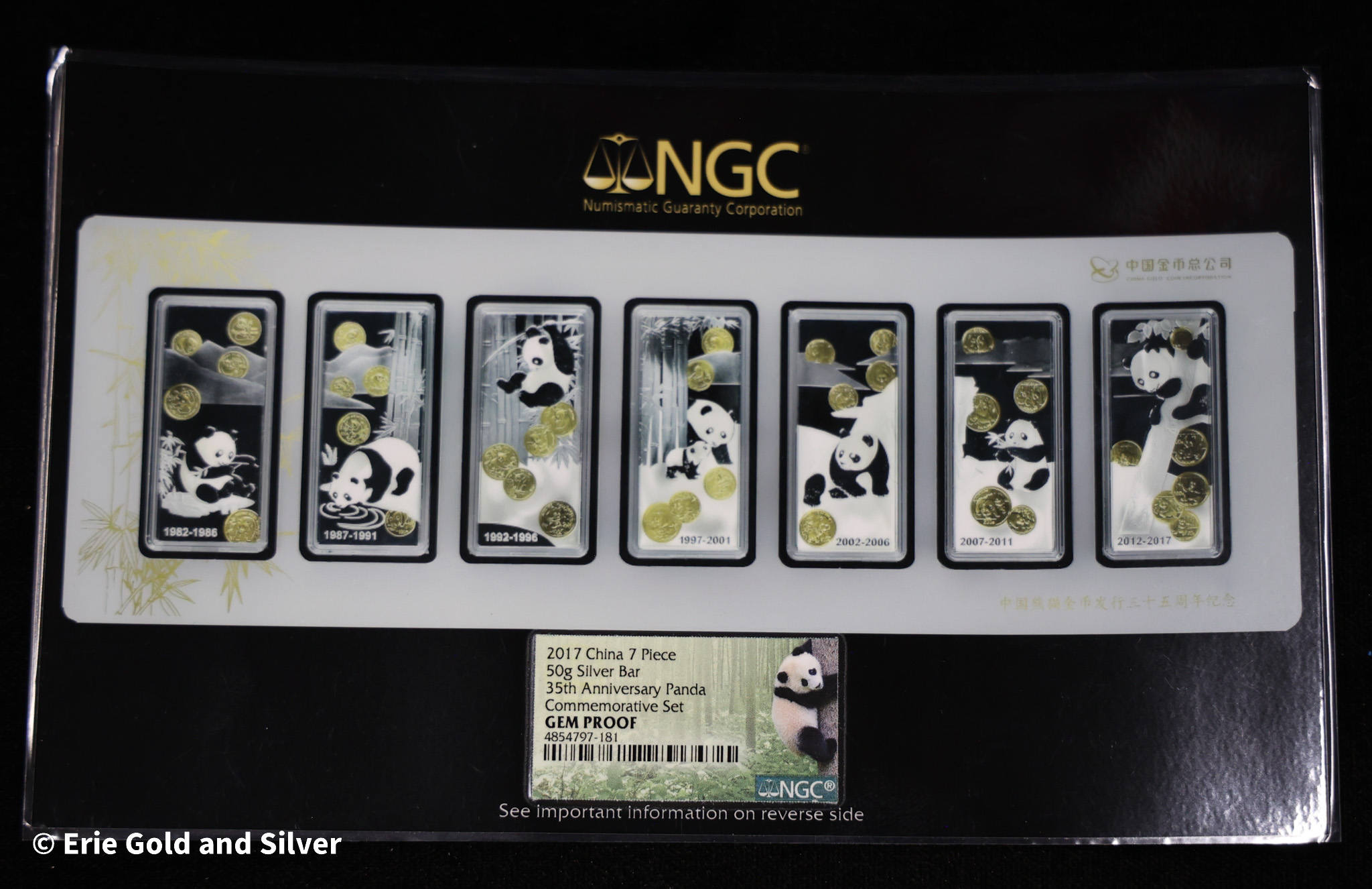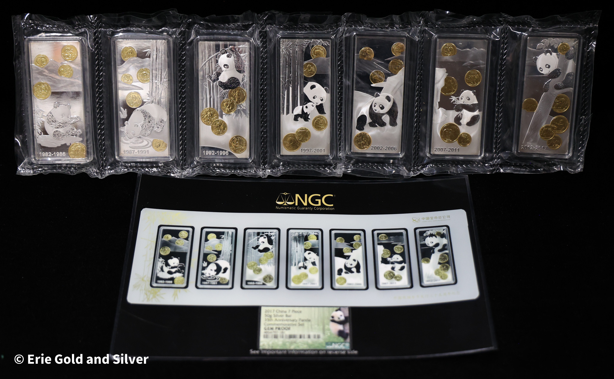2017 China Panda 50g Silver Bar 7-Piece Commemorative Set in Box NGC Gem Proof
