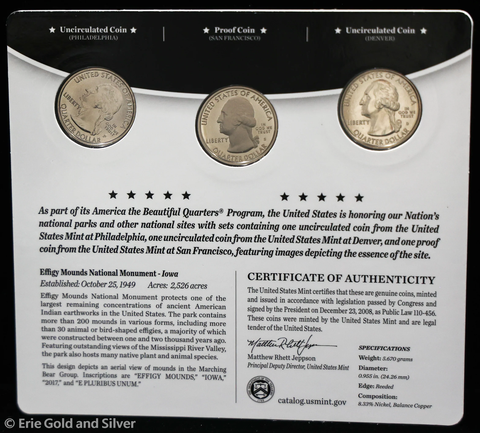 2017 P D S 25c ATB Effigy Mounds Quarters 3 Coin Set | BU Proof