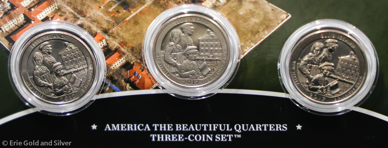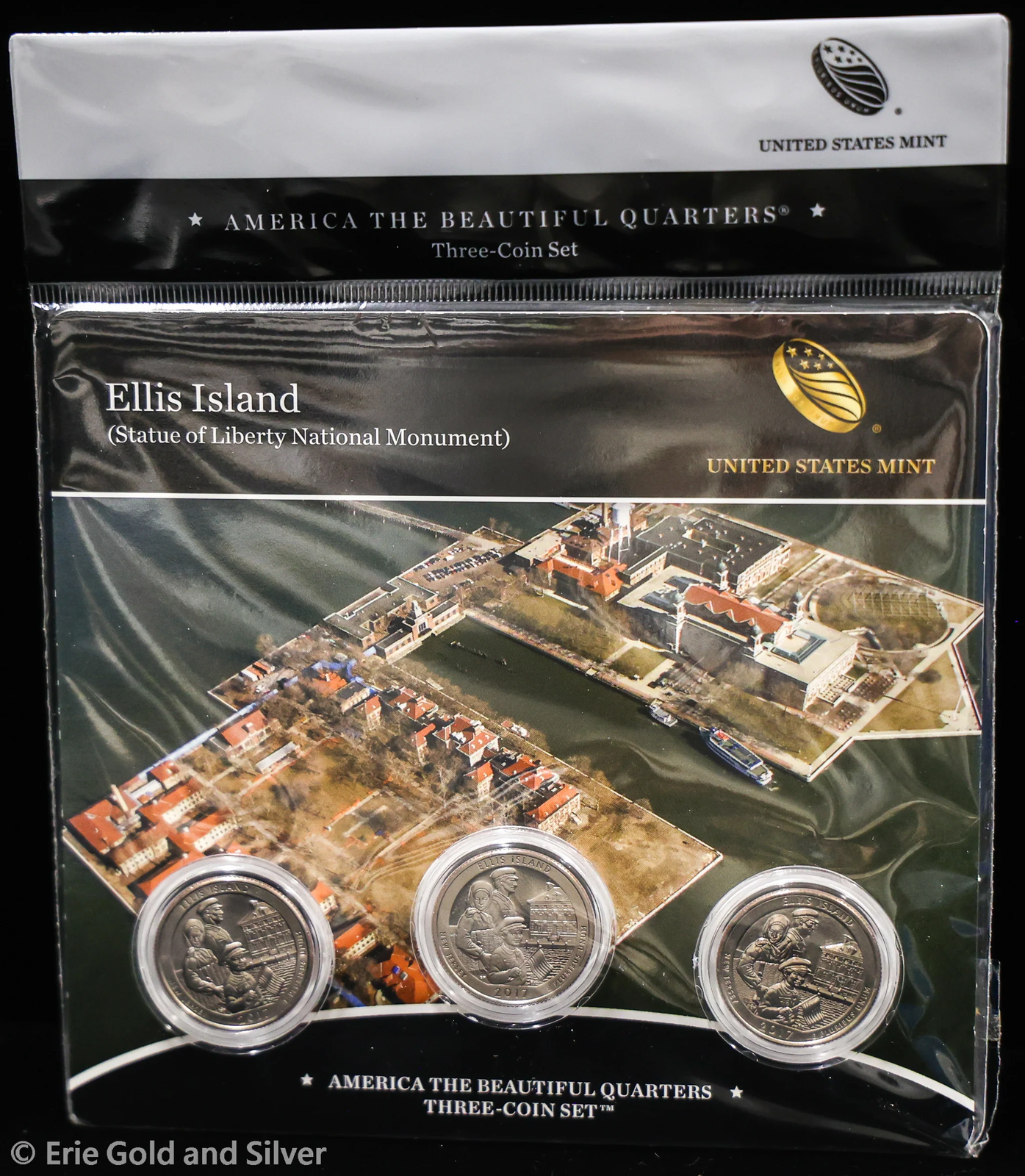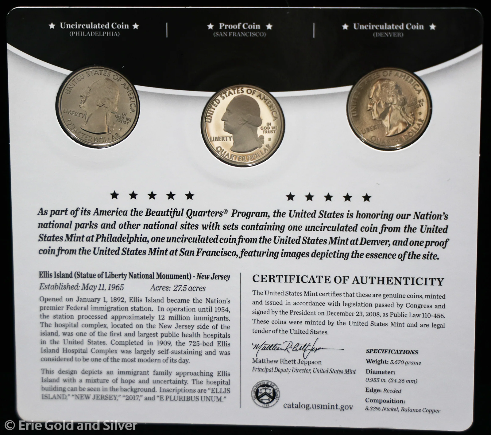 2017 P D S 25c ATB Ellis Island Quarters 3 Coin Set | BU Proof