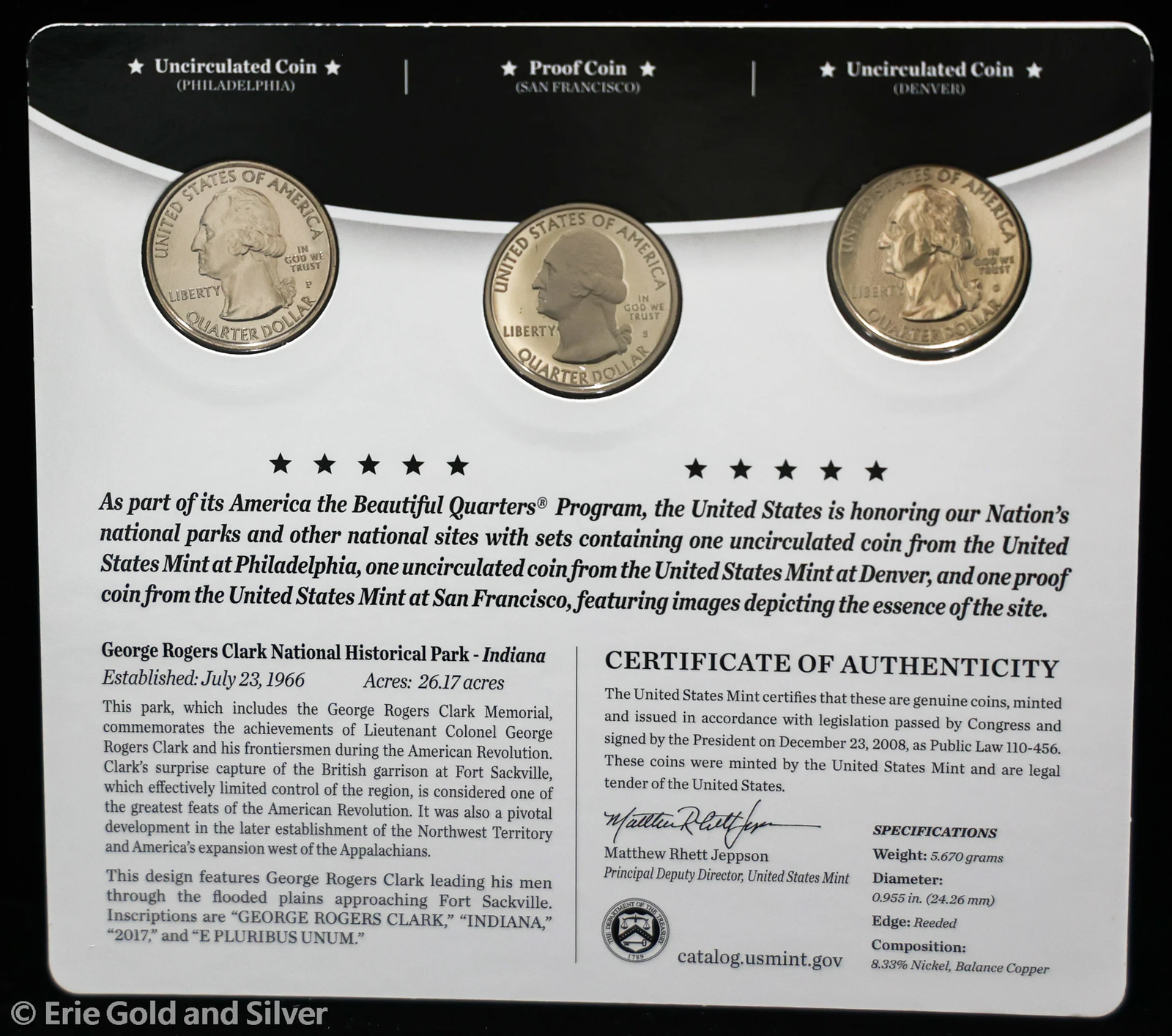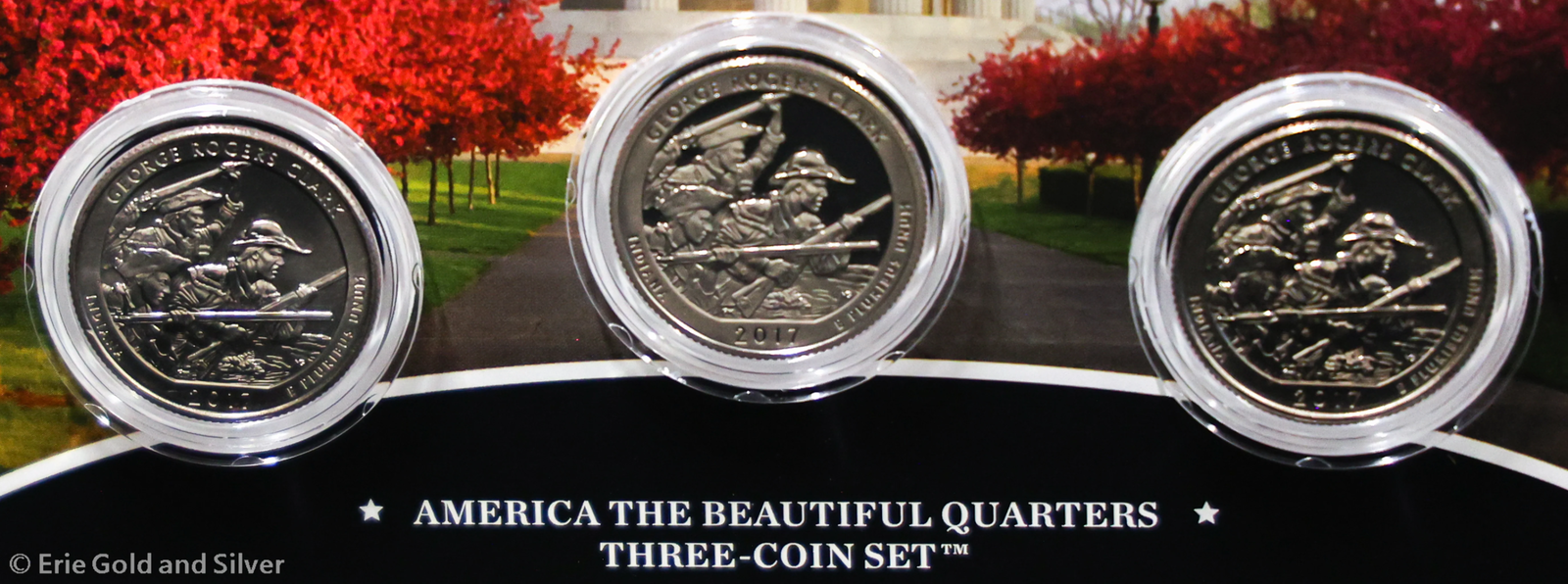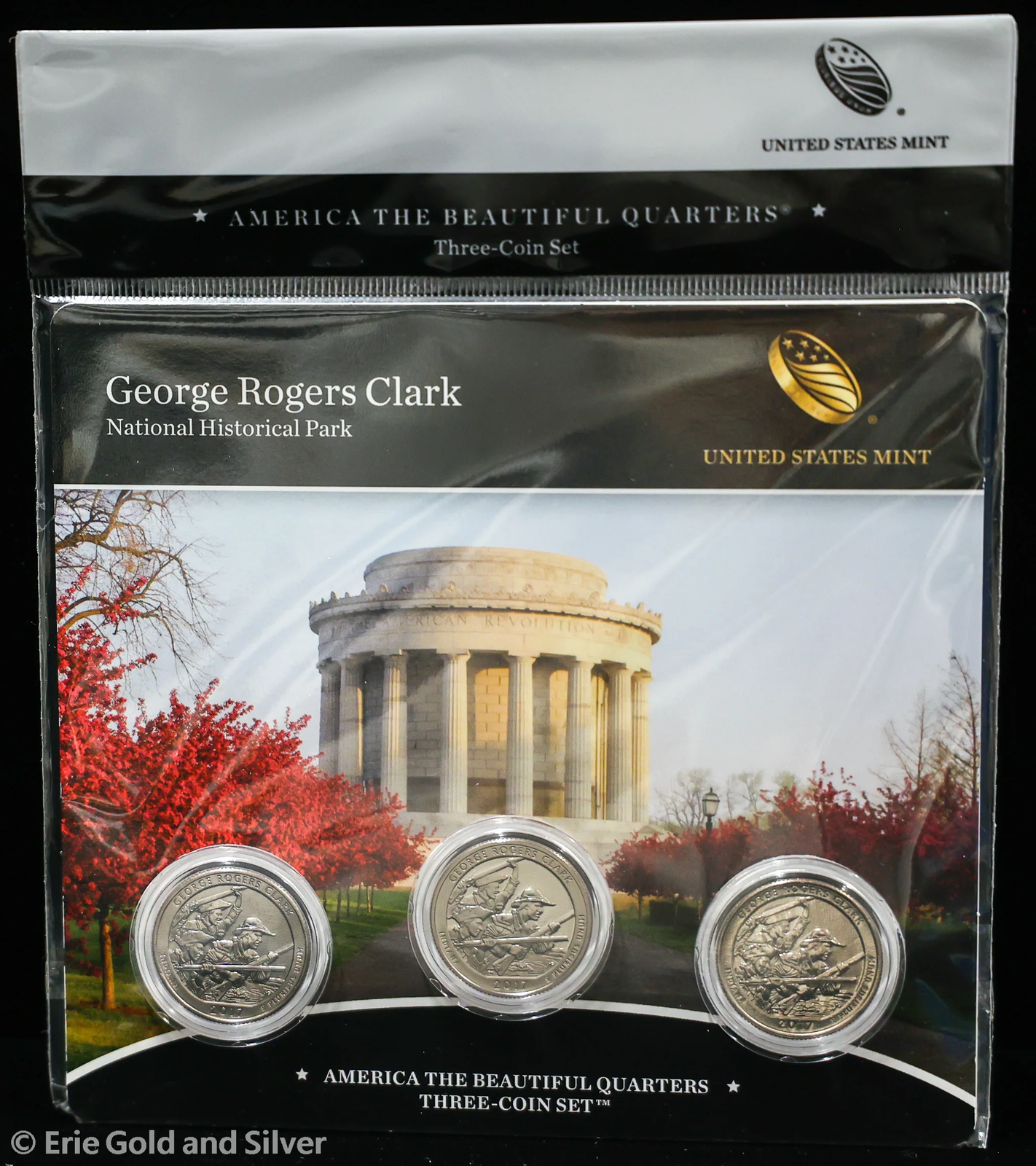 2017 P D S 25c ATB George Rogers Clark Quarters 3 Coin Set | BU Proof