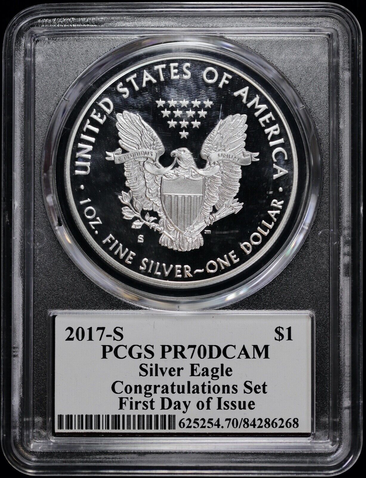 2017-S Proof Silver Eagle PCGS PR 70 First Day Congrats Mercanti Signed BU ASE