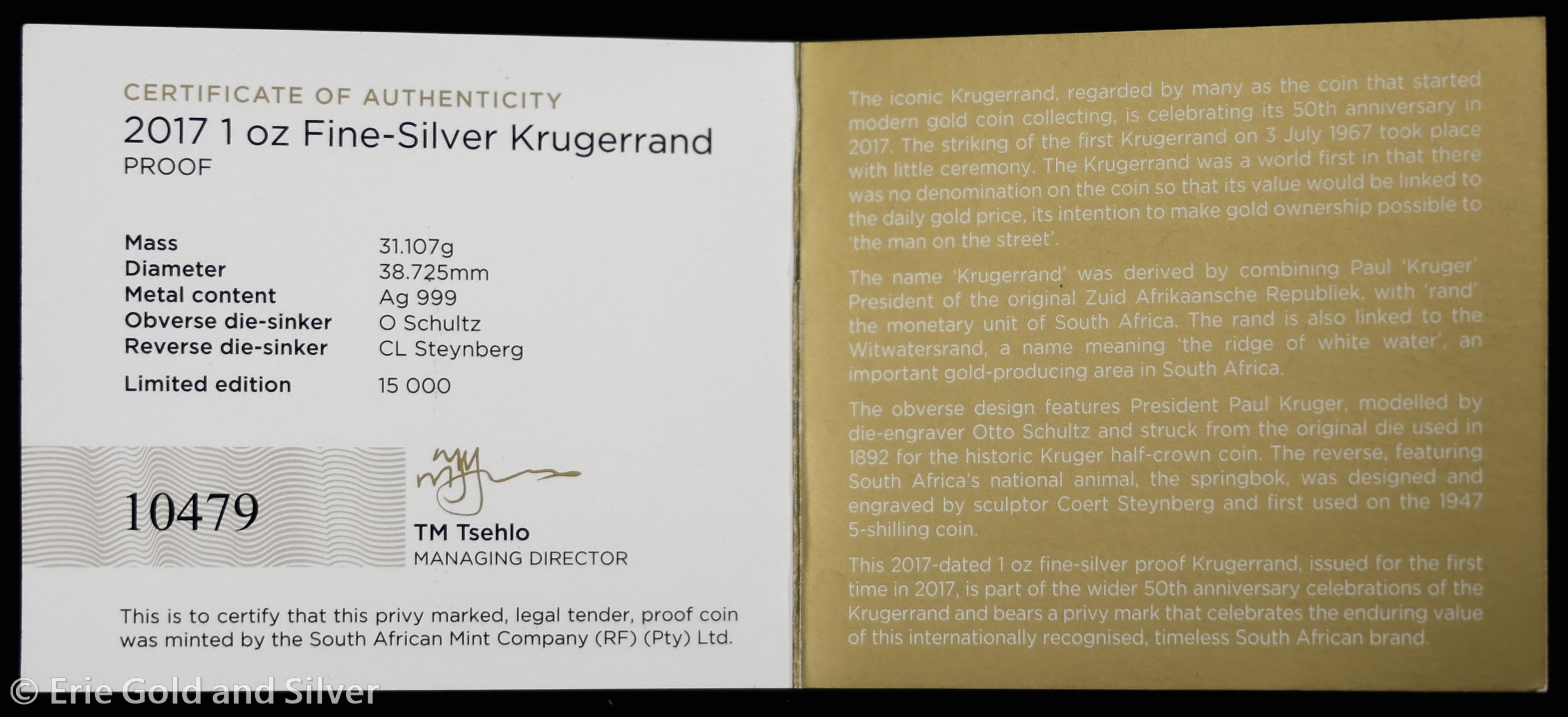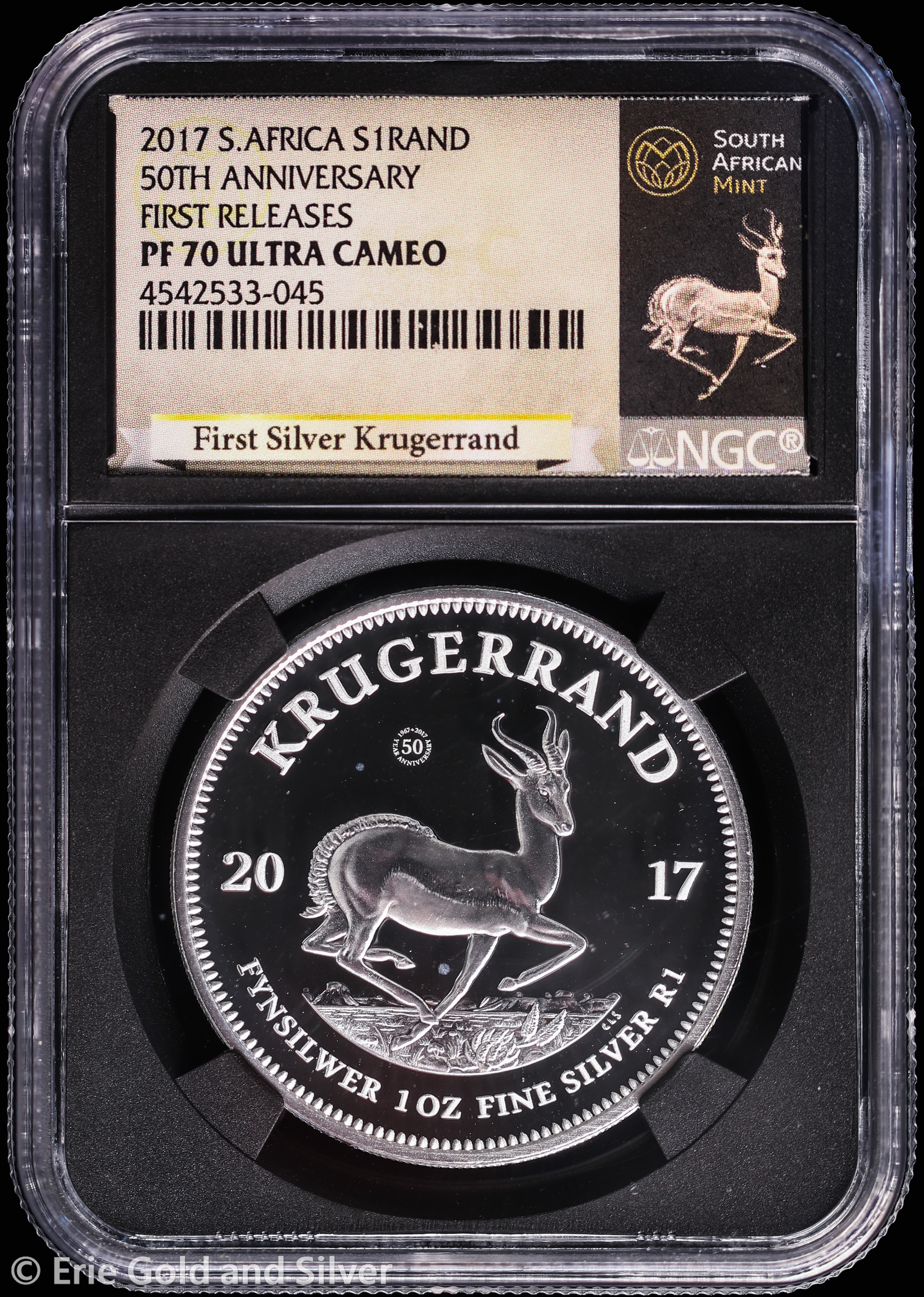 2017 South Africa Proof 1 oz Silver Krugerrand with Box & COA NGC PR 70 UC | First Releases