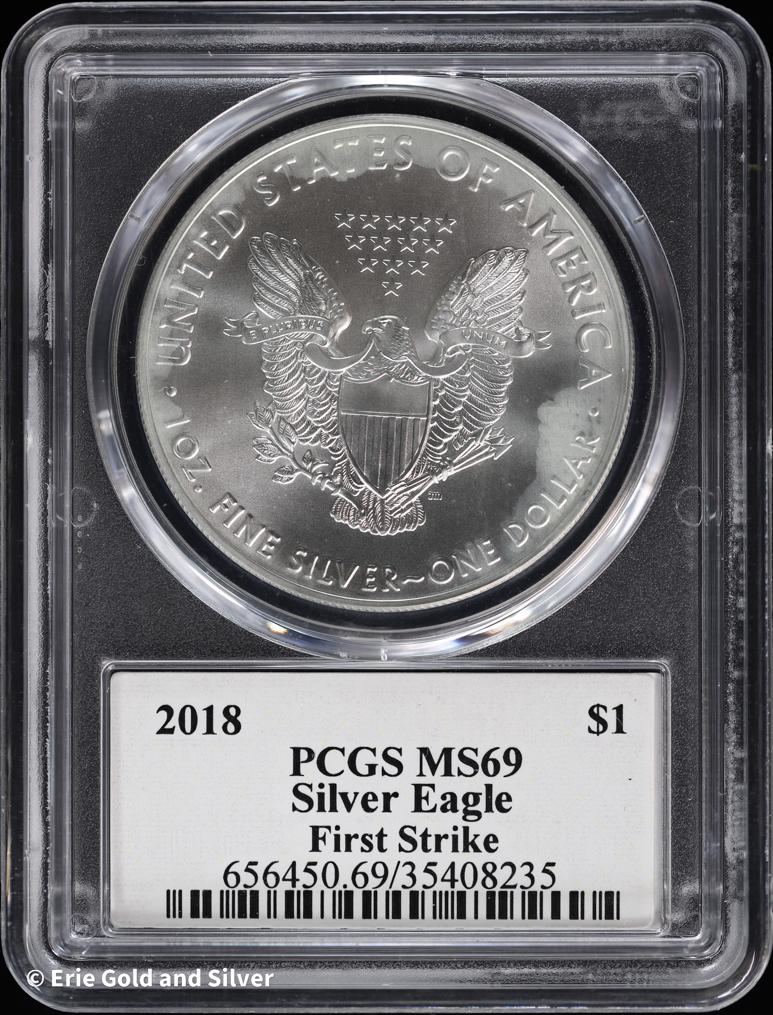 2018 $1 American Silver Eagle PCGS MS 69 | First Strike Trump Slab
