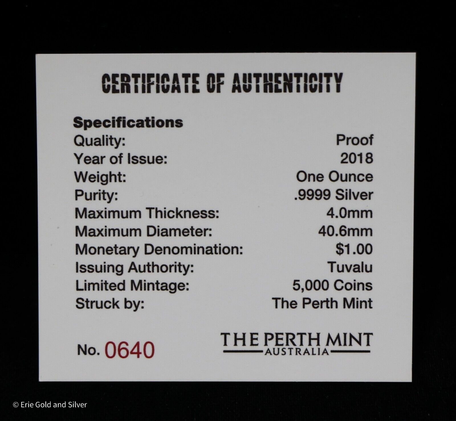 For sale is a 2018 Australia Powerful Owl Endangered Series 1 oz Silver in OGP w/ COA. View pictures for details and condition, the coin pictured is the exact coin you will receive. Feel free to contact us with any questions.