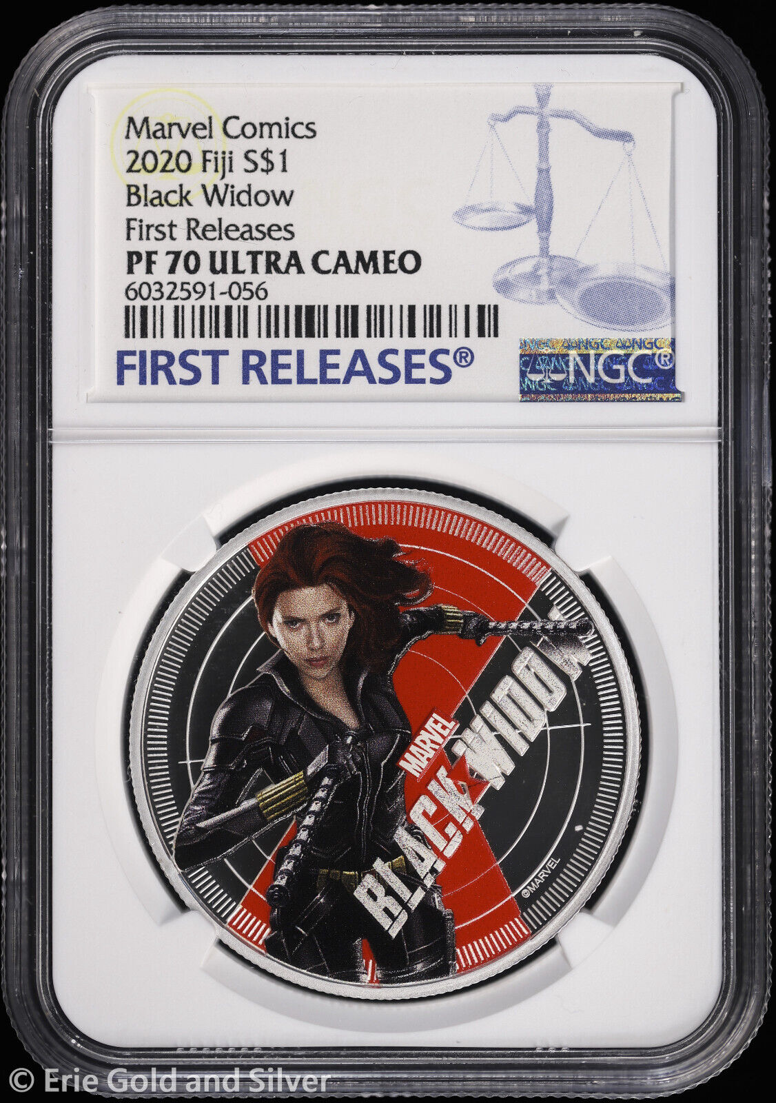 For sale is a 2020 $2 Fiji Proof Marvel: Black Widow 1 oz Silver Colorized Coin & Pin Set in OGP. Certified/graded by NGC at PF 70 Ultra Cameo. View pictures for details and condition. The item pictured is the exact item you will receive. Feel free to contact us with any questions.