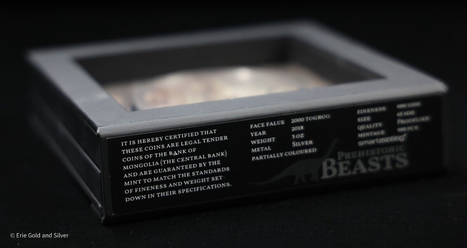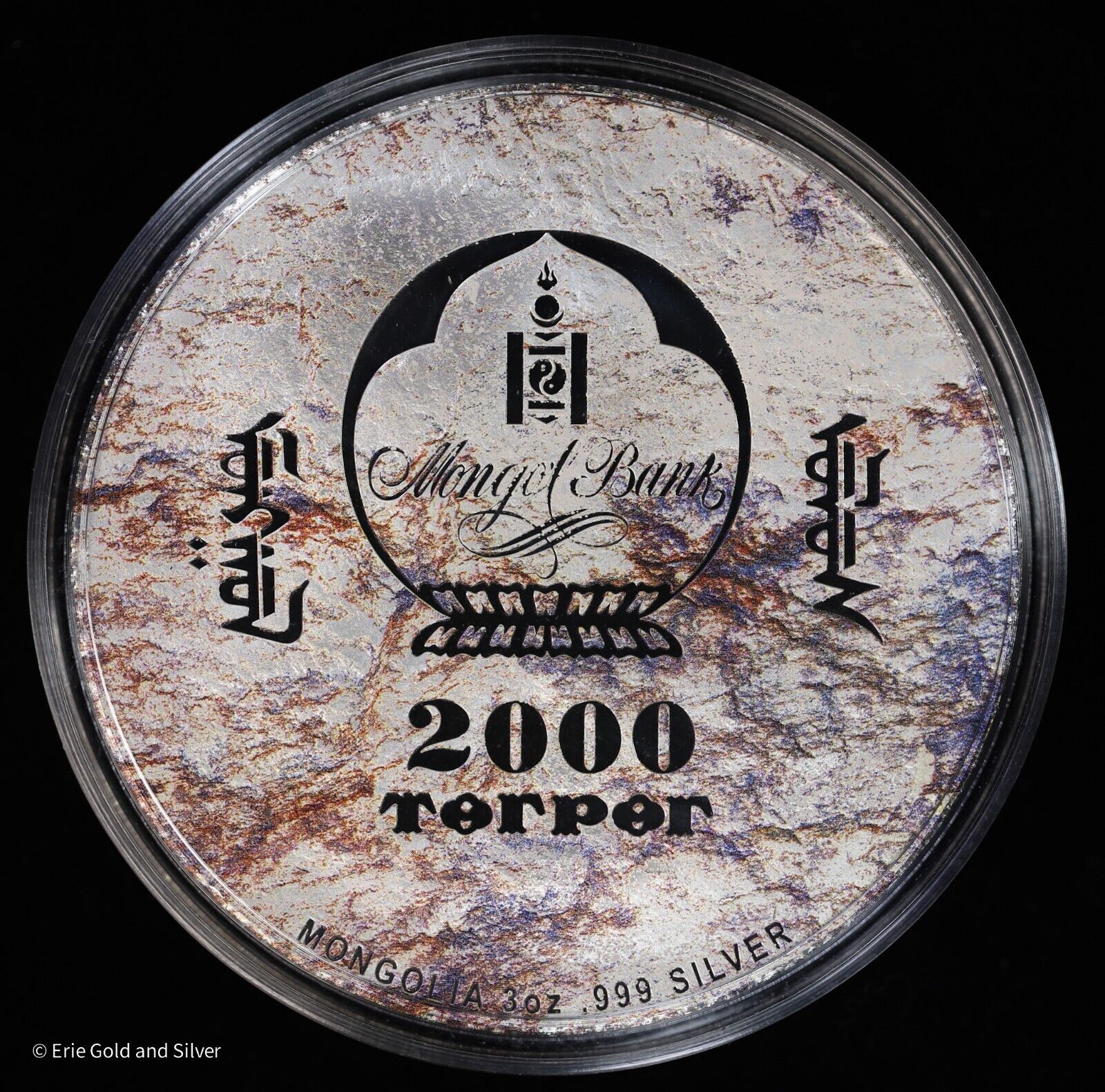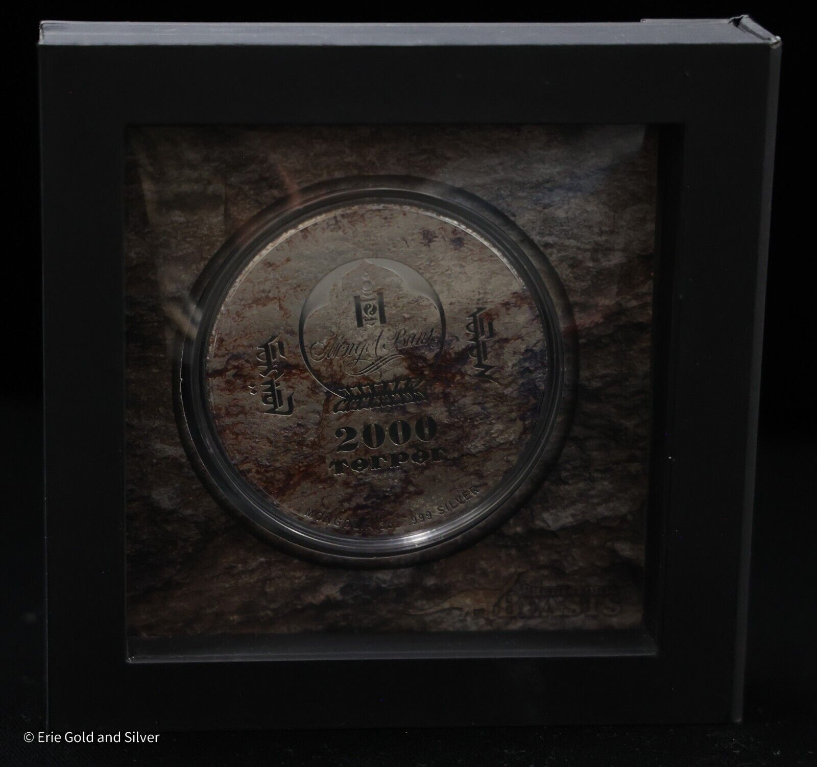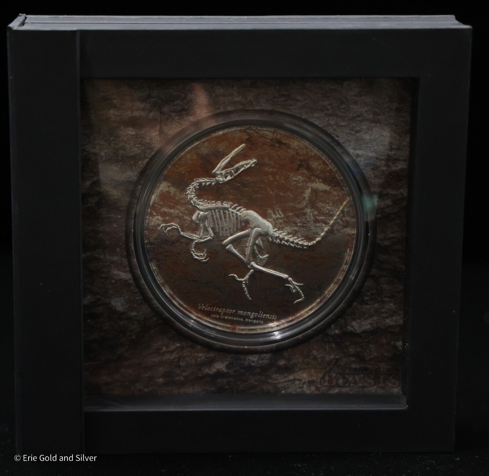 2018 Mongolia Velociraptor 3 oz Silver Prooflike 2000 Togrog in Box