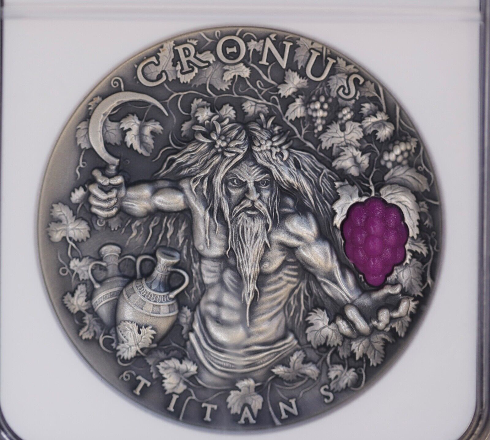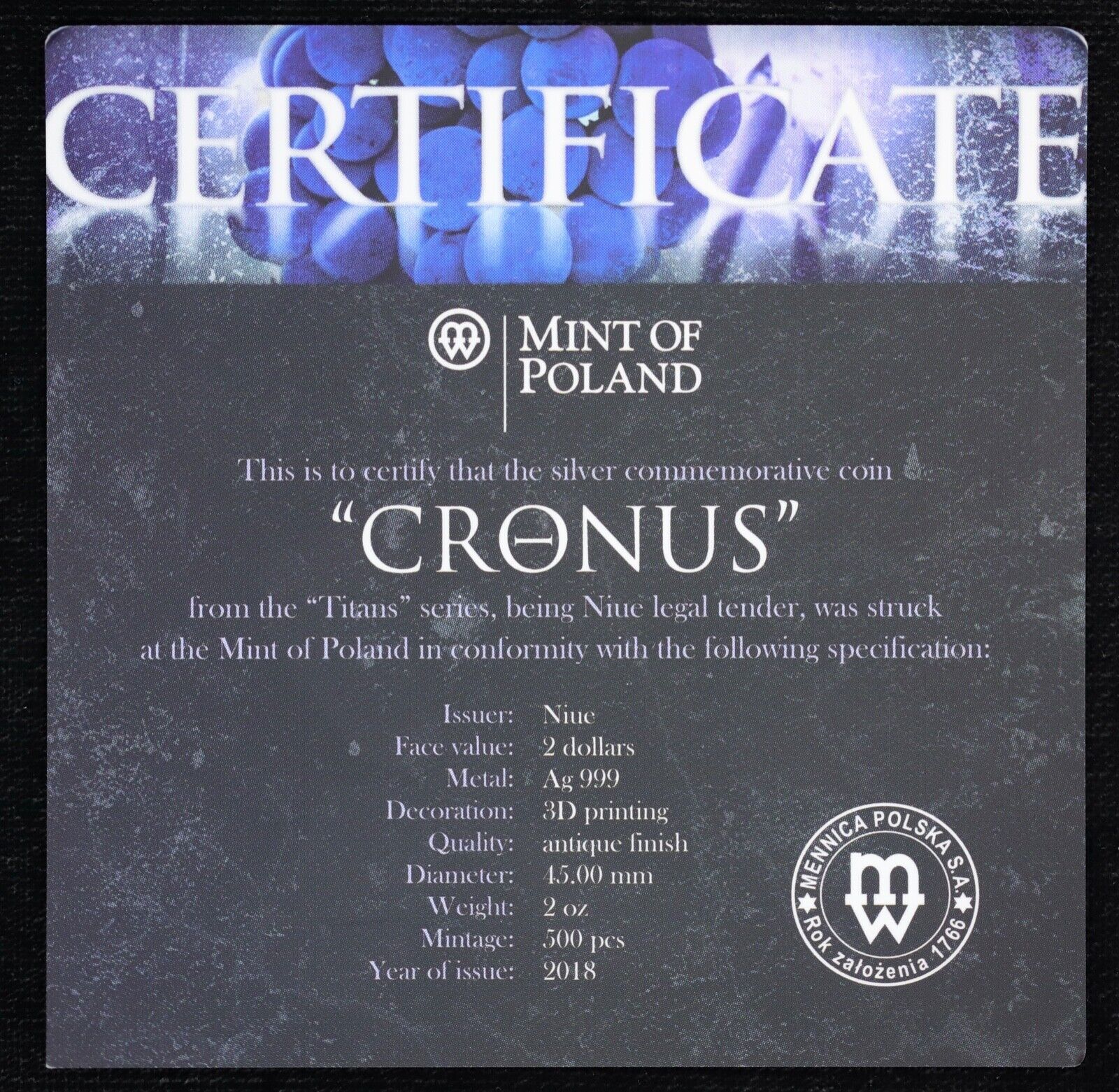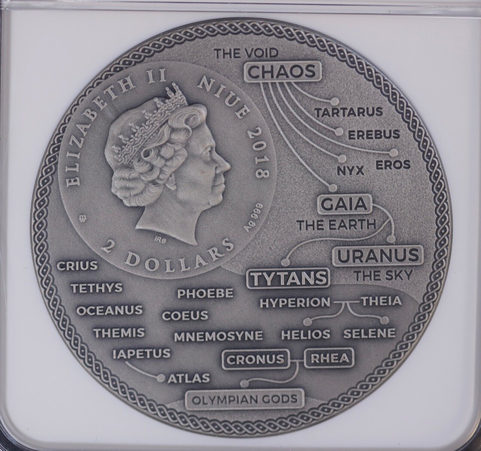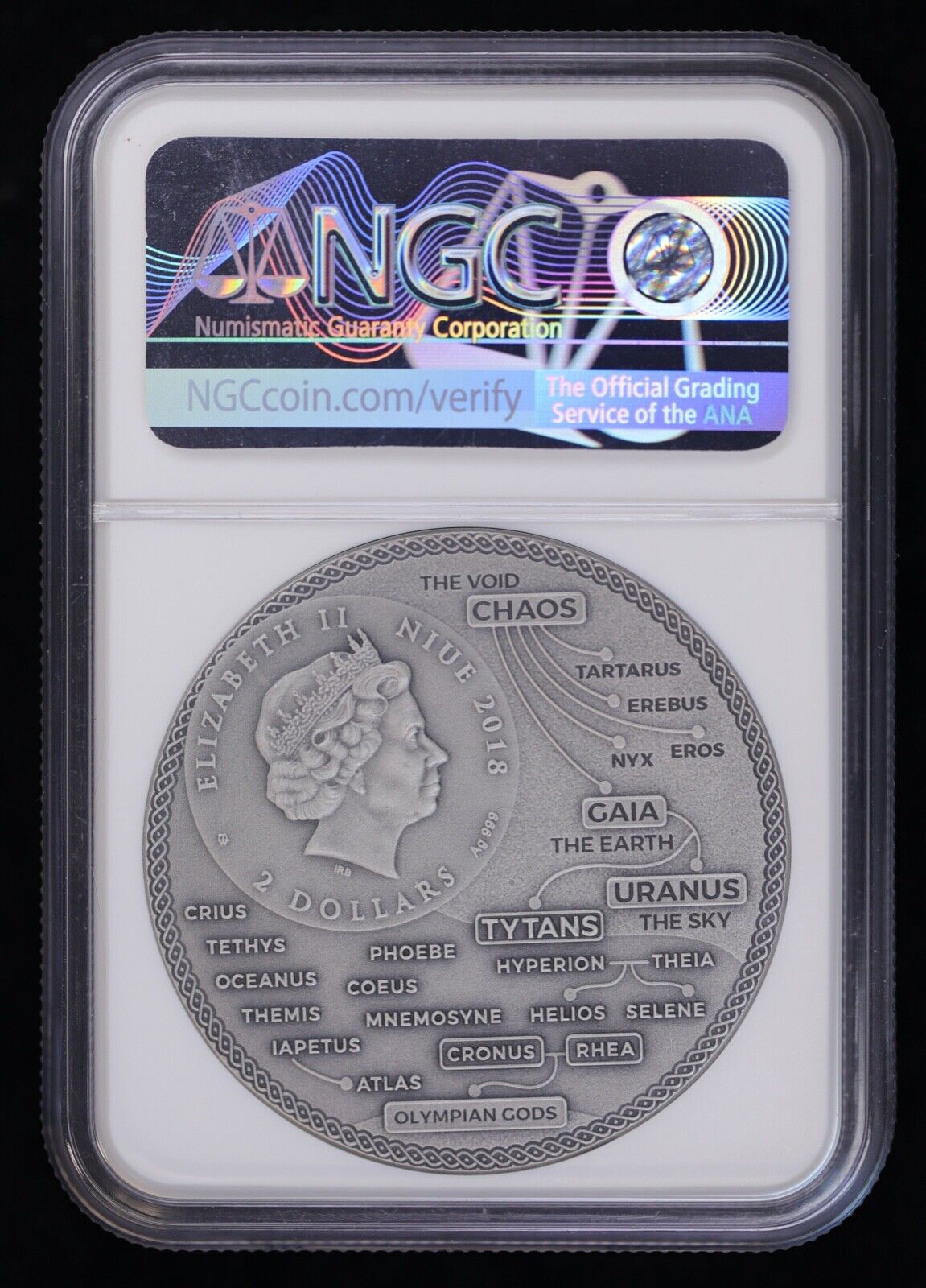 2018 $2 Niue Greek Titans Cronus 2 oz .999 Silver Antiqued Coin NGC MS 70 w/ COA