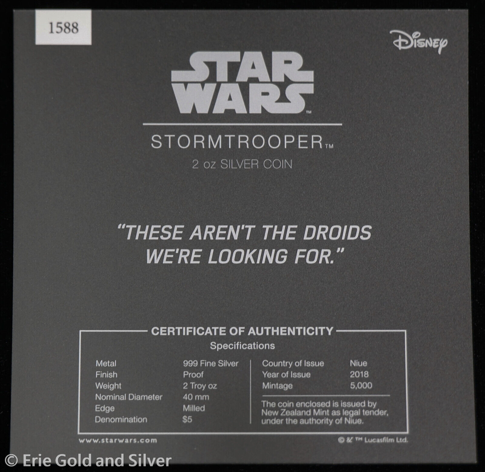For sale is a 2018 Niue Star Wars Stormtrooper 2 oz Silver Proof Coin w/ Box. View pictures for details and condition. The item pictured is the exact item you will receive. Feel free to contact us with any questions.