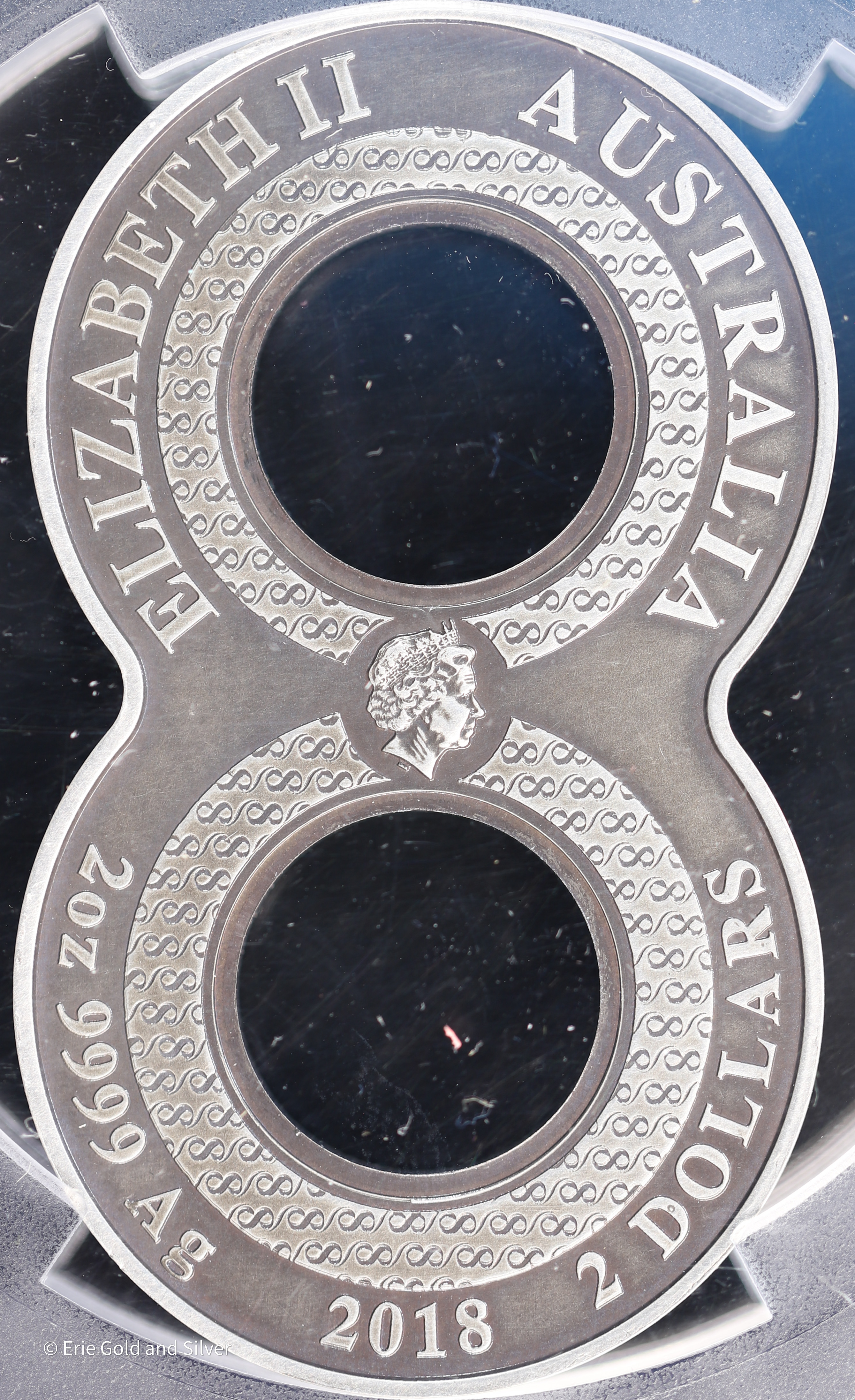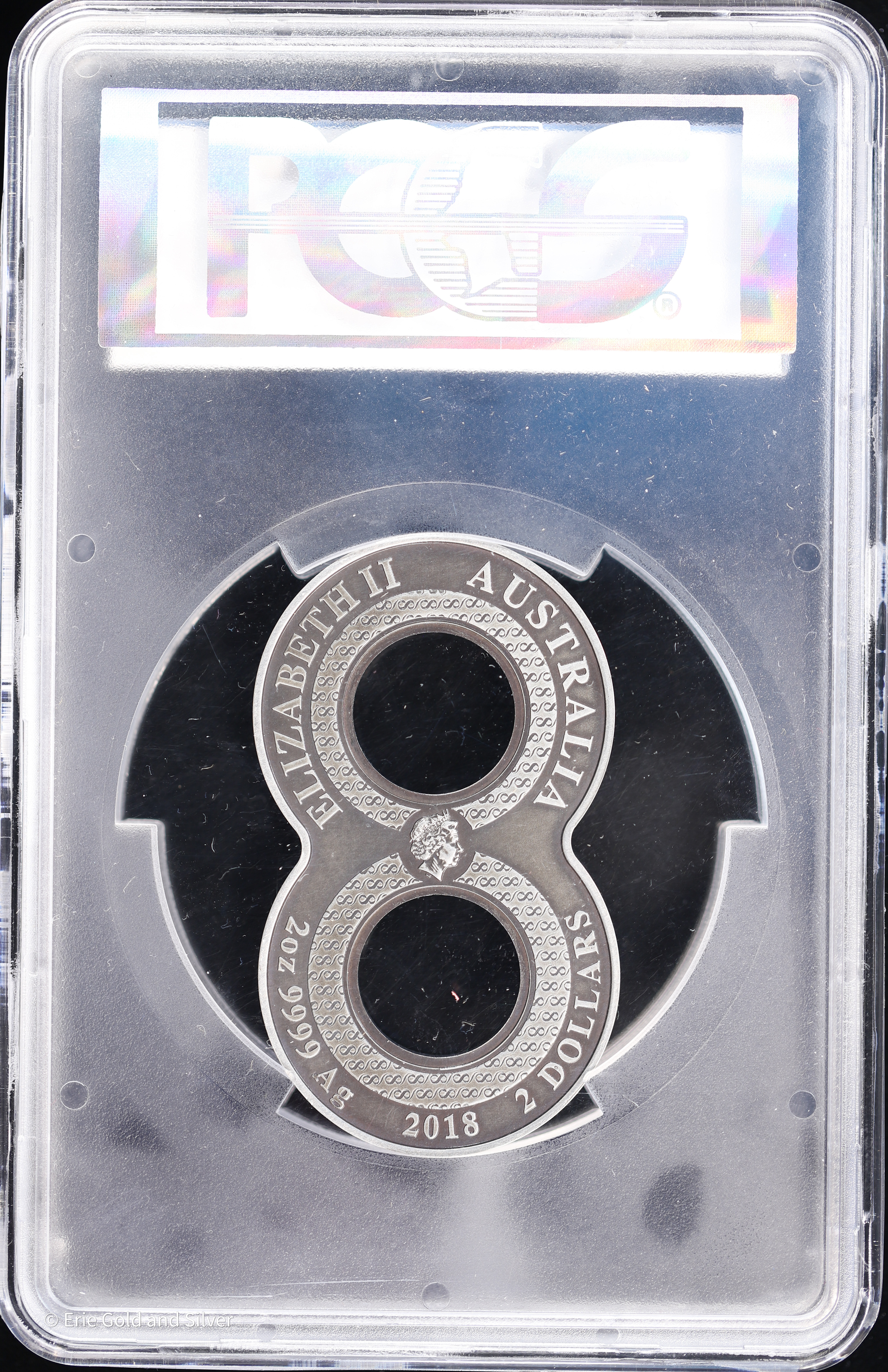 For sale is a 2018-P $2 Australia Figure Eight Dragon Antique Finish. Graded / Certified by PCGS at MS 70, First Day of Issue.