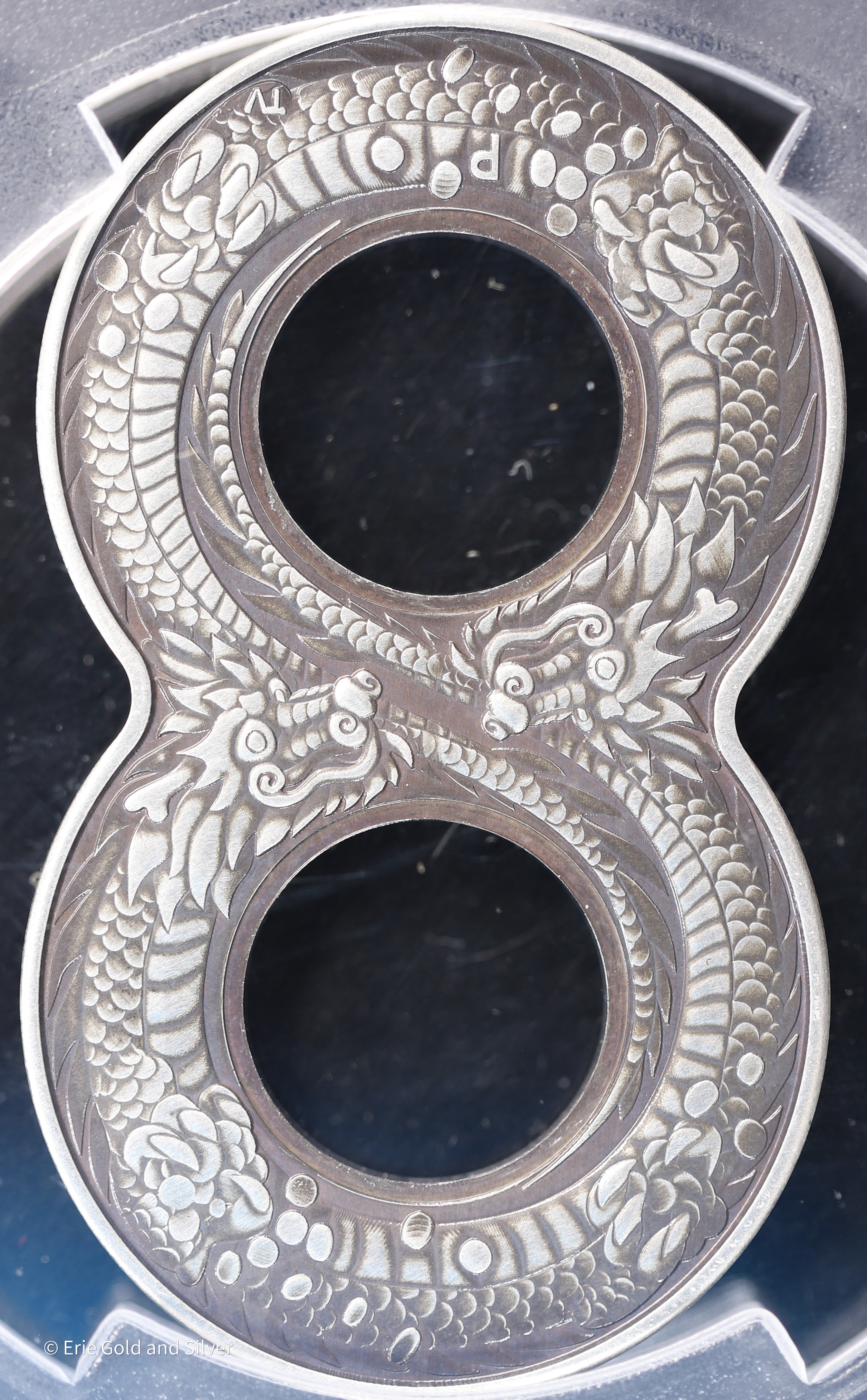Struck by the Perth Mint in .9999 fine silver, this uniquely shaped coin features the iconic Chinese dragon in the figure-eight design symbolizing luck and prosperity. With its limited mintage and stunning detail, it’s a standout addition to any collection.