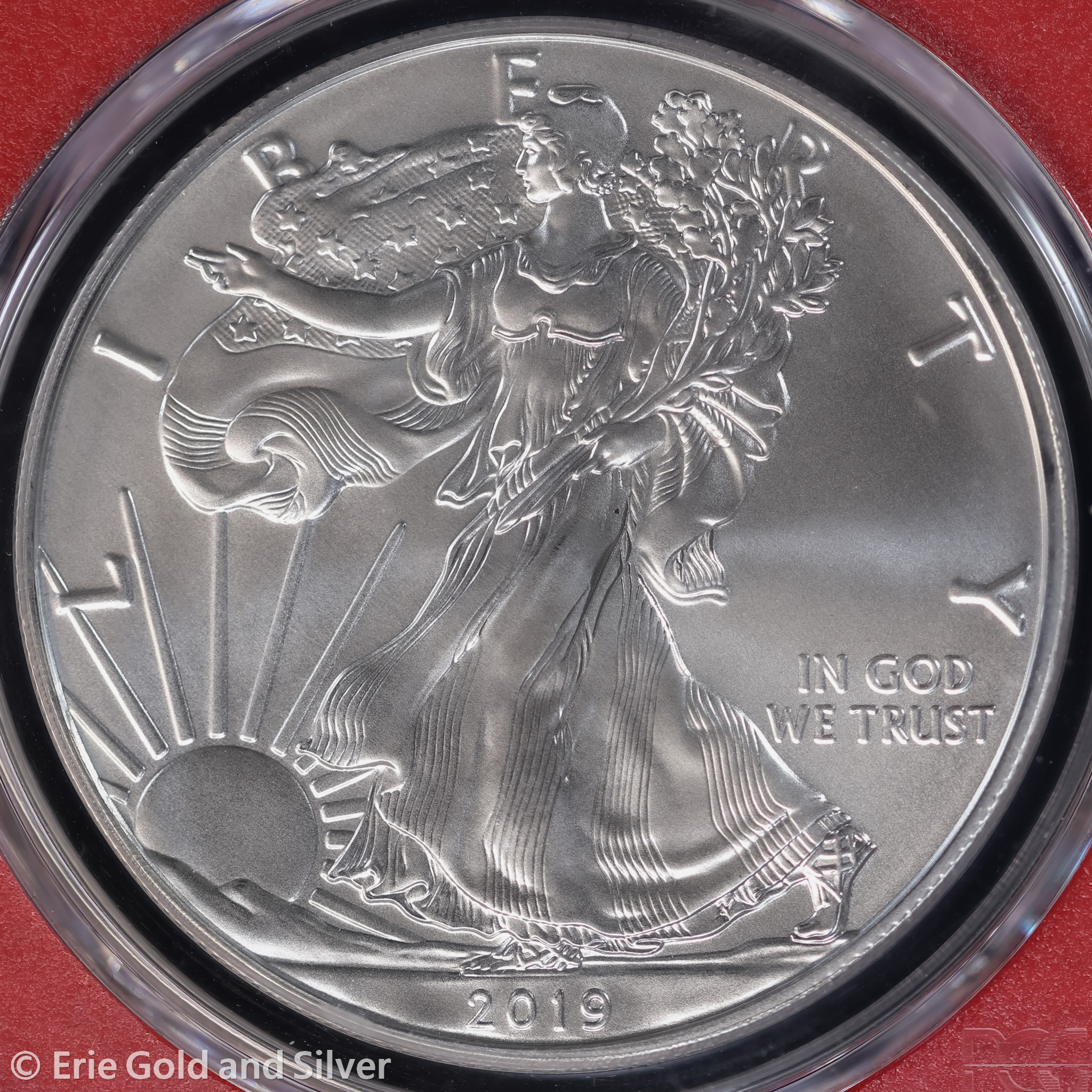 For sale is a 2019 American Silver Eagle. Certified / graded by PCGS at MS 70.