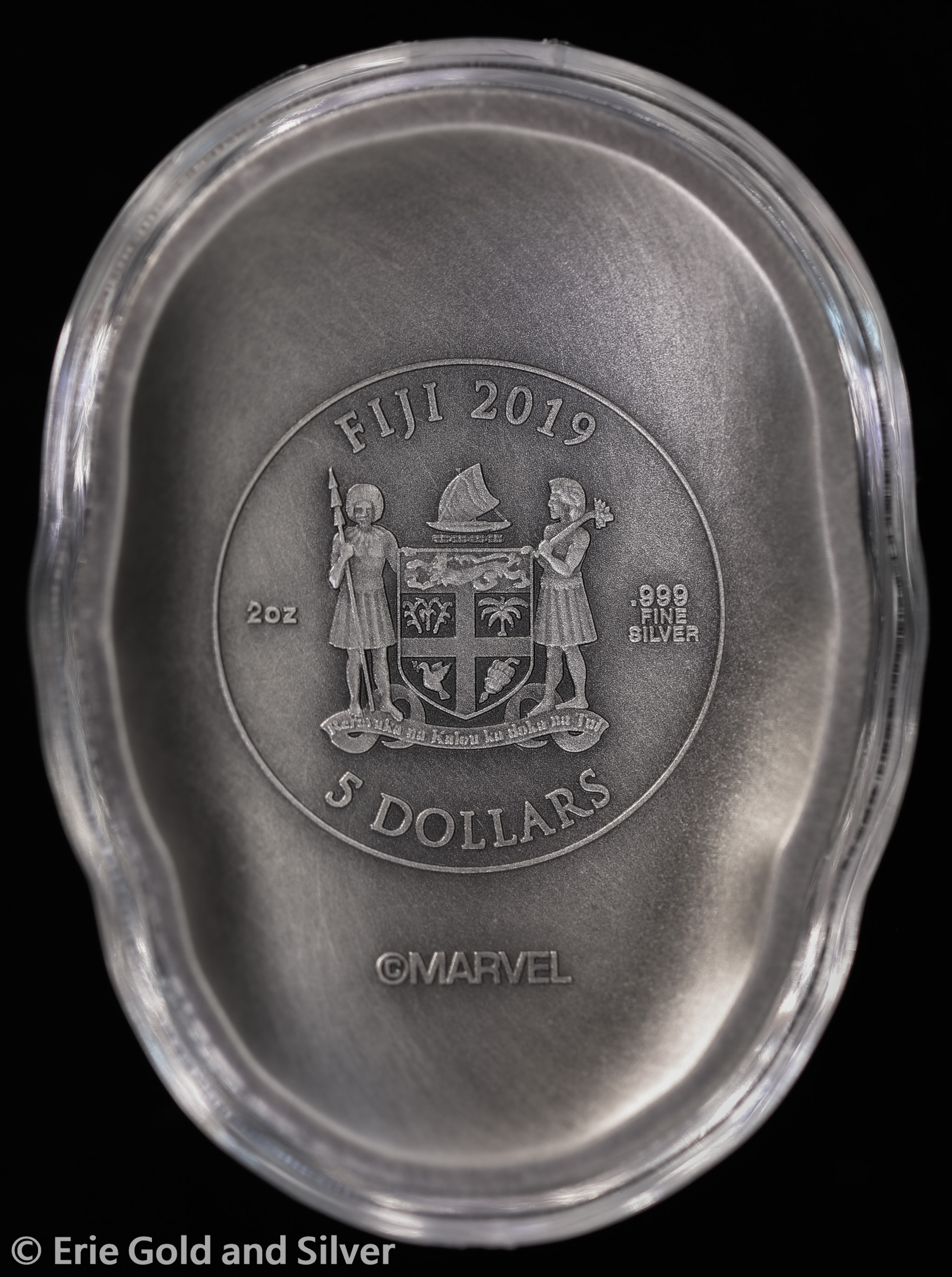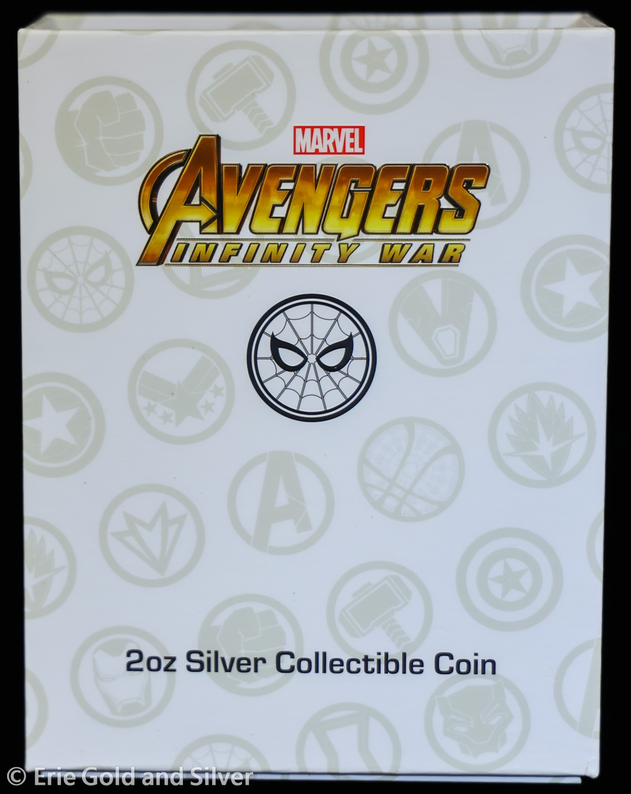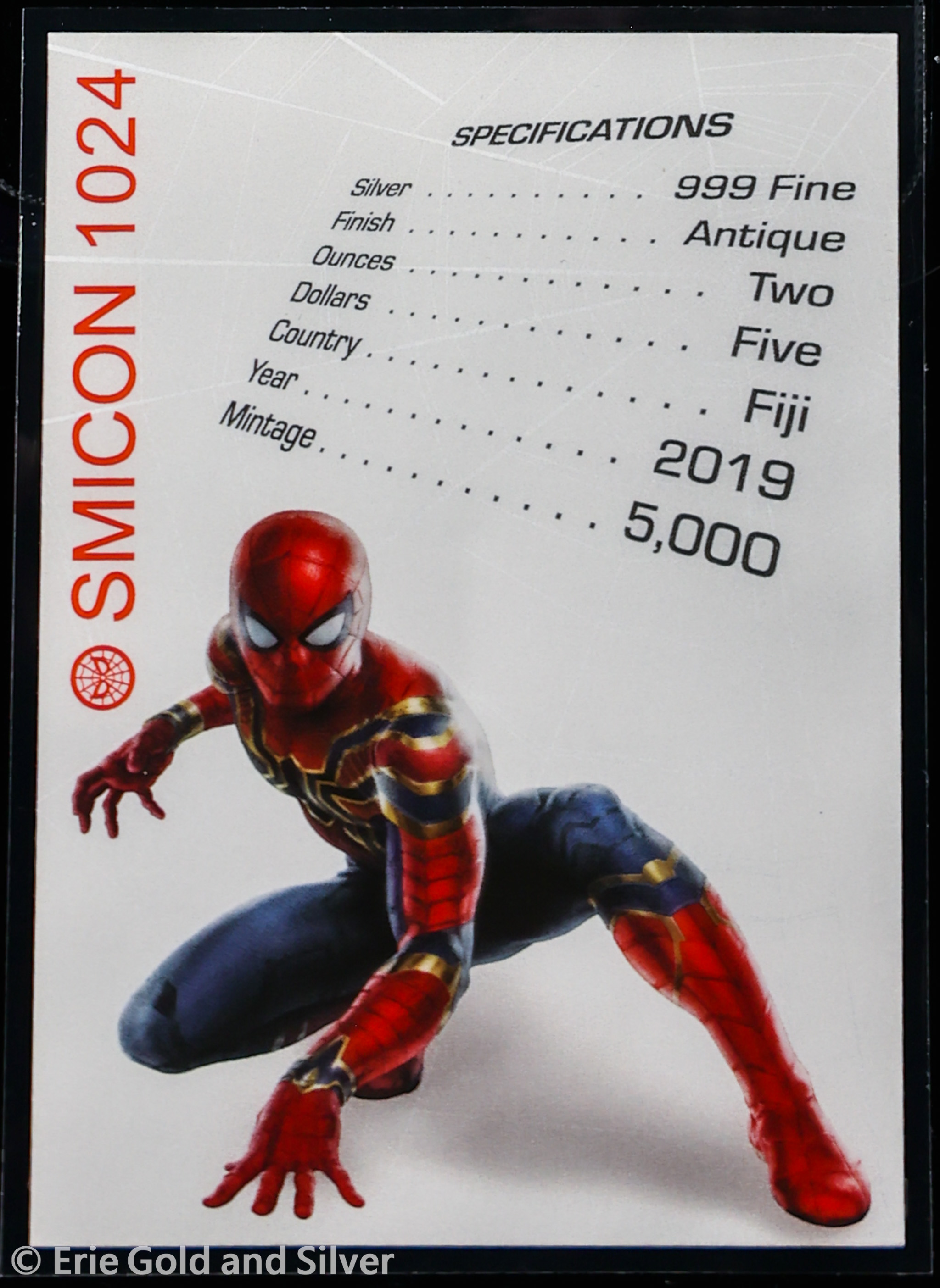 2019 $5 Fiji Marvel Avengers Infinity War Spiderman 2 oz Silver Antiqued Coin in OGP