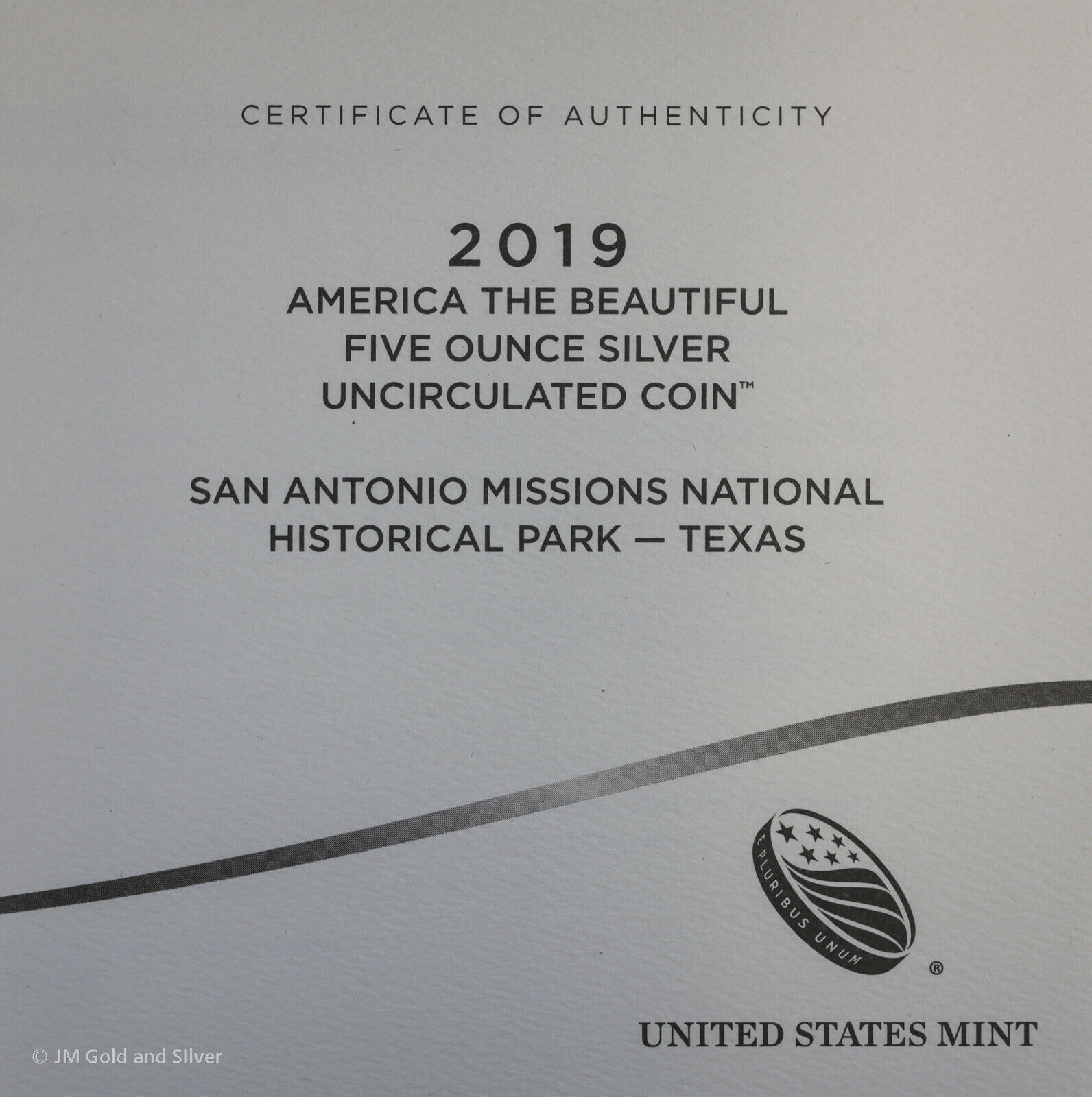 2019 5 oz Silver ATB Quarter – San Antonio Missions | Burnished w/ OGP