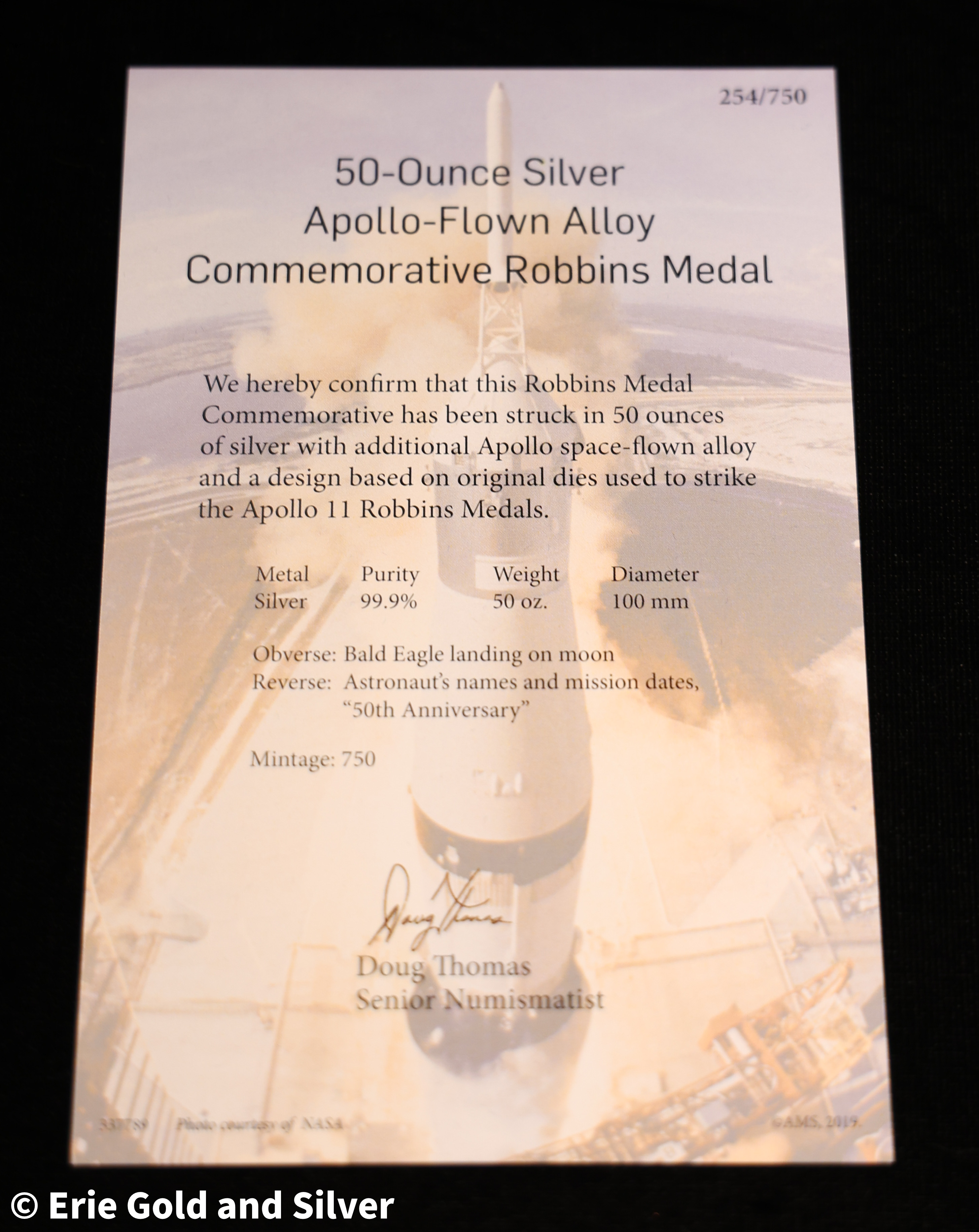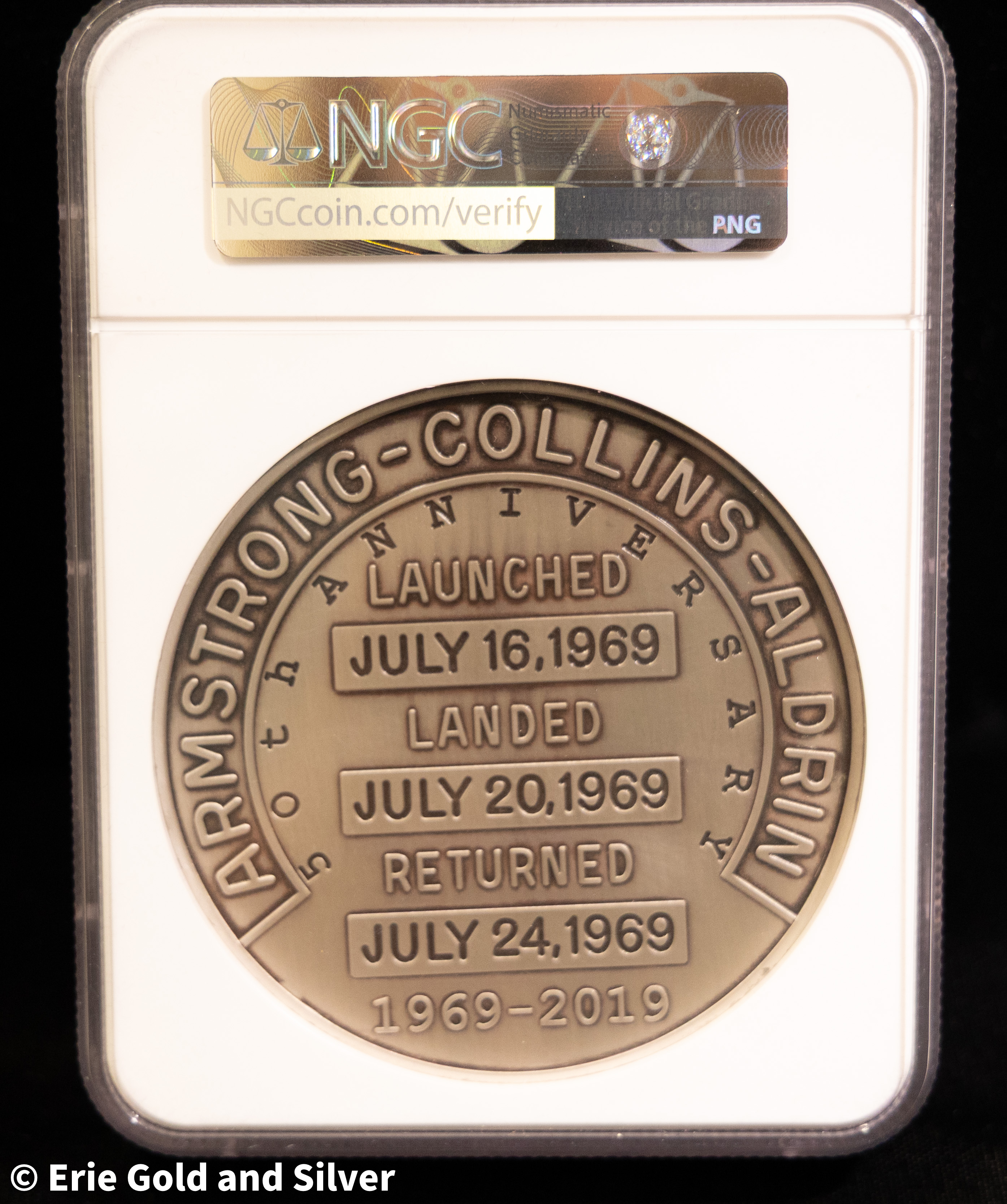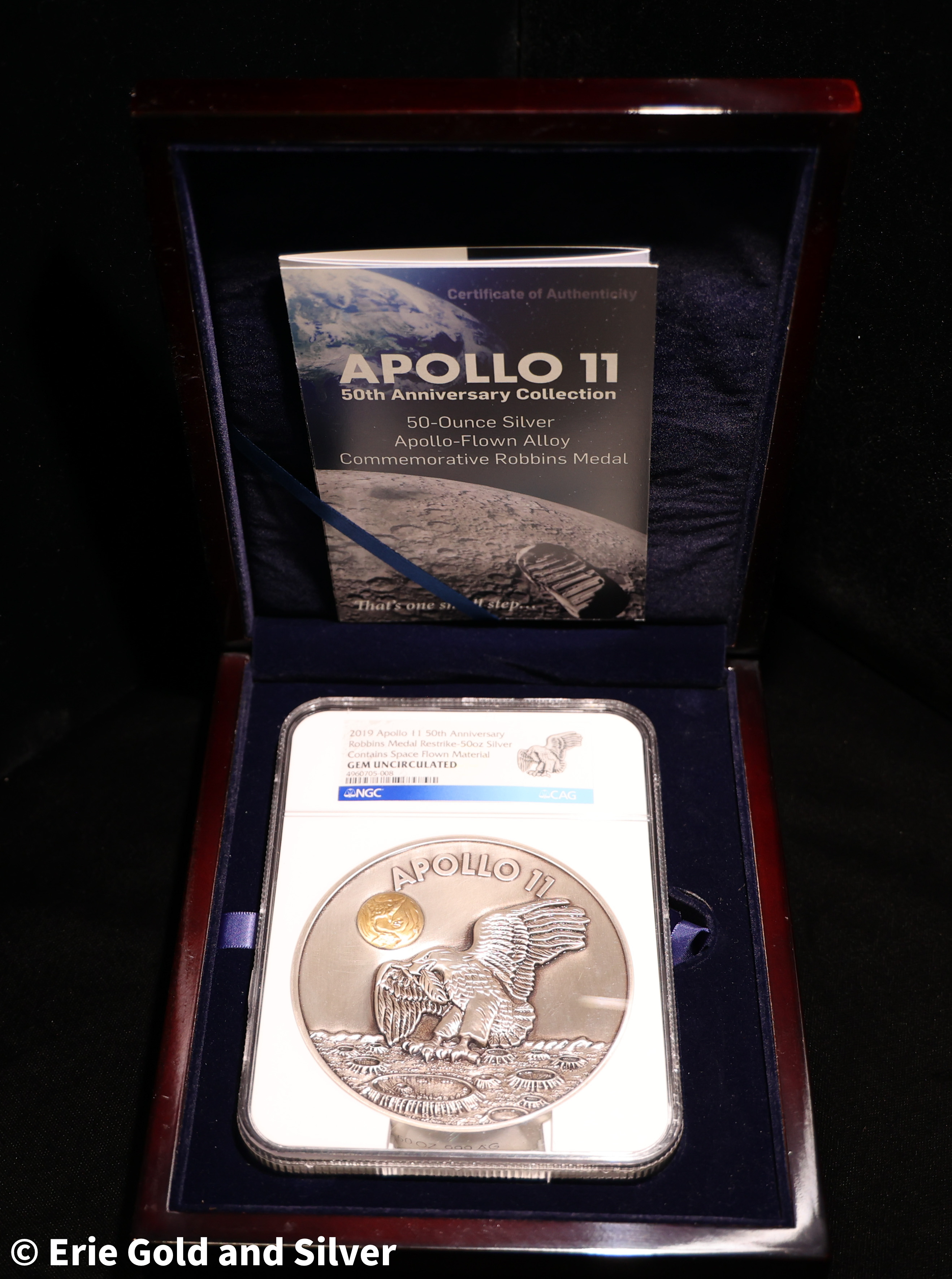 For Sale is a 2019 Apollo 11 50th Anniversary Medal Restrike NGC Gem UNC 50 oz Silver with Box