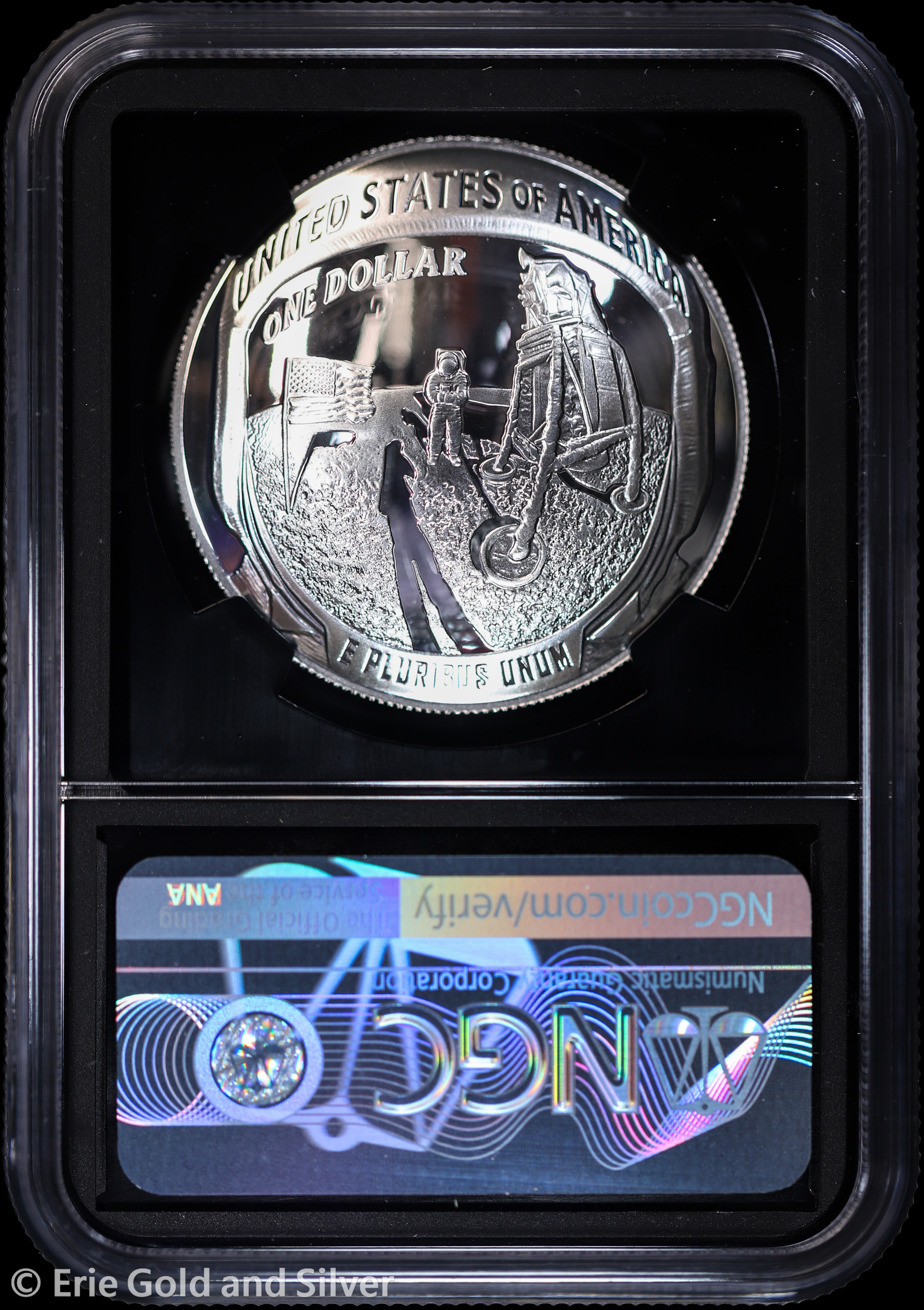 For sale is a 2019 Apollo 11 50th Anniversary 4-Coin & Space Flown Kapton Foil Set in Storage Box. Certified / graded by NGC at PR 70 Ultra Cameo.