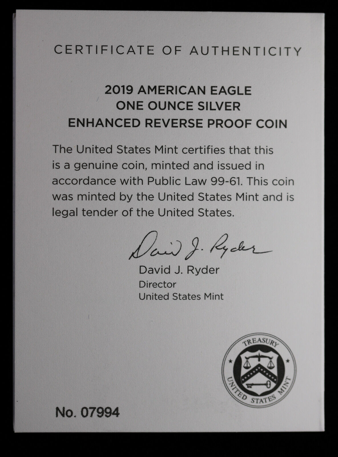 2019 Enhanced Reverse Proof Silver Eagle PCGS PR 69 | First Strike Box & COA
