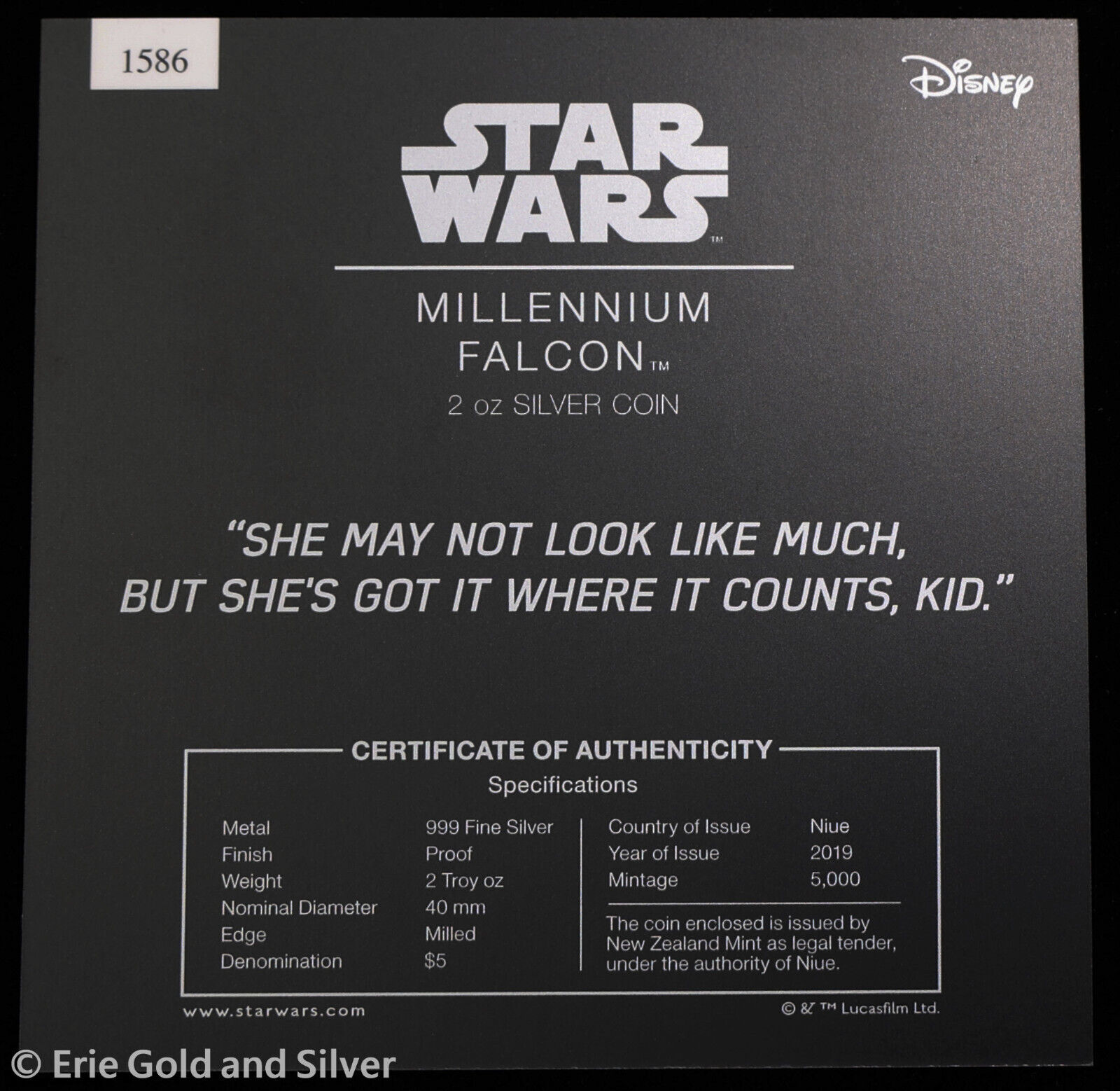 2019 Niue Star Wars Millennium Falcon 2 oz Silver Proof Coin w/ Box