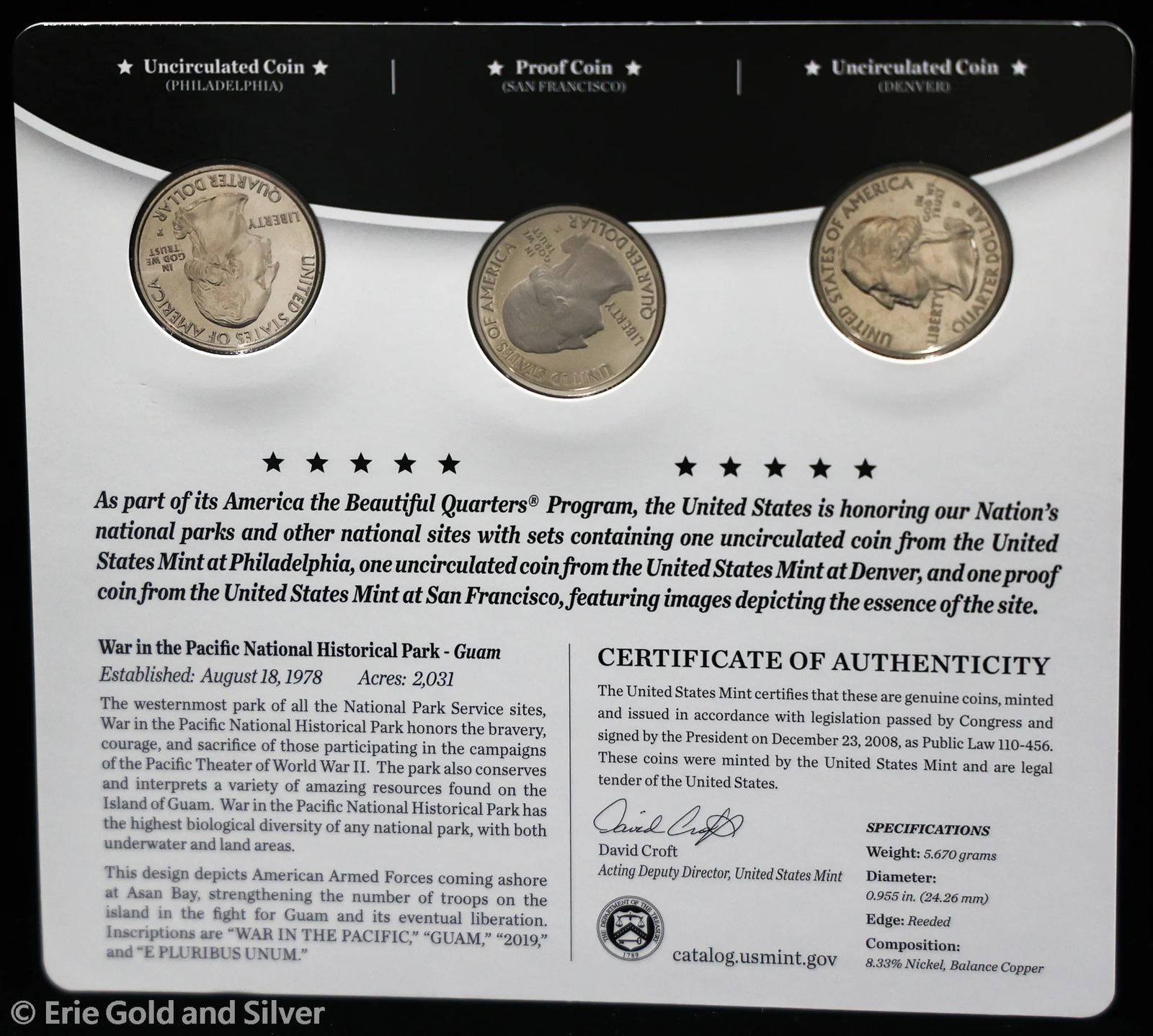 2019 P D S 25c ATB War in the Pacific Quarters 3 Coin Set | BU Proof