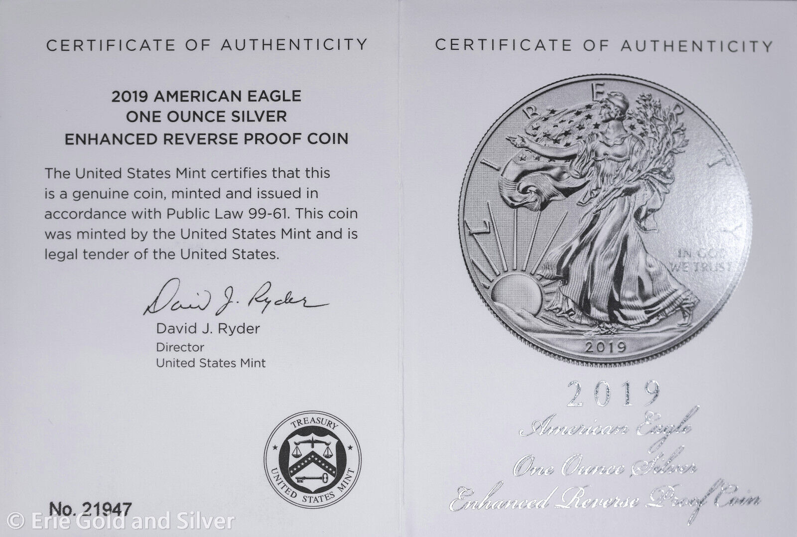 2019-S Enhanced Reverse Proof Silver Eagle NGC PR 70 | Mercanti Signed w/ COA