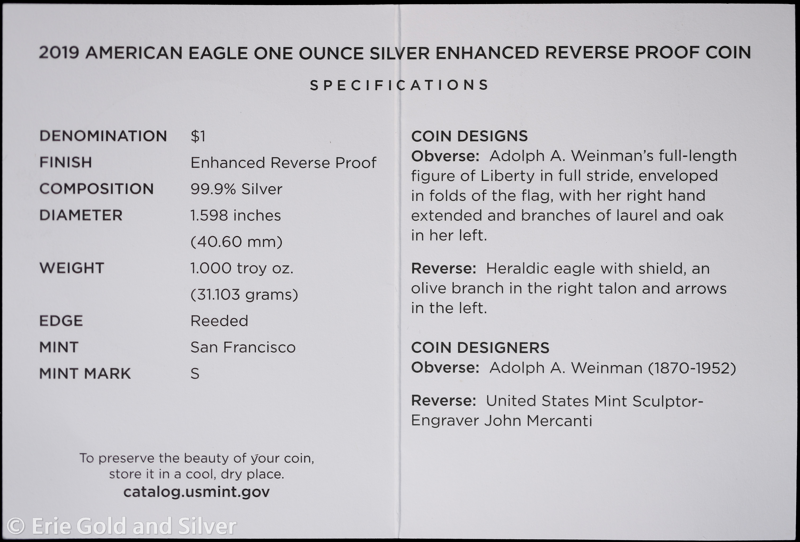For sale is a 2019-S Enhanced Reverse Proof American Silver Eagle with COA. Certified / graded by NGC at PR 70.