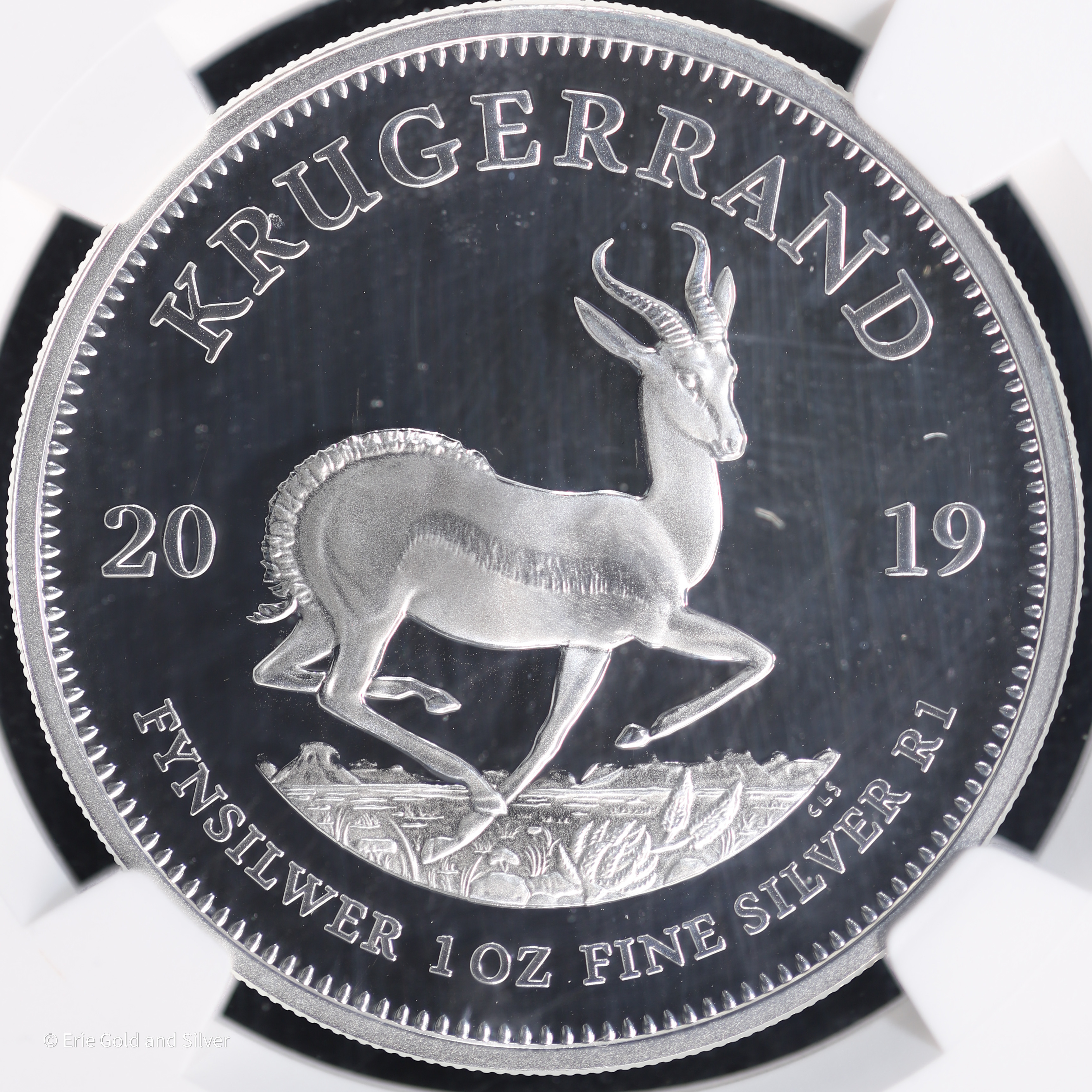 For sale is a 2019 South Africa 1 oz Silver Krugerrand 1R. Graded / Certified by NGC at PF 70 Ultra Cameo.