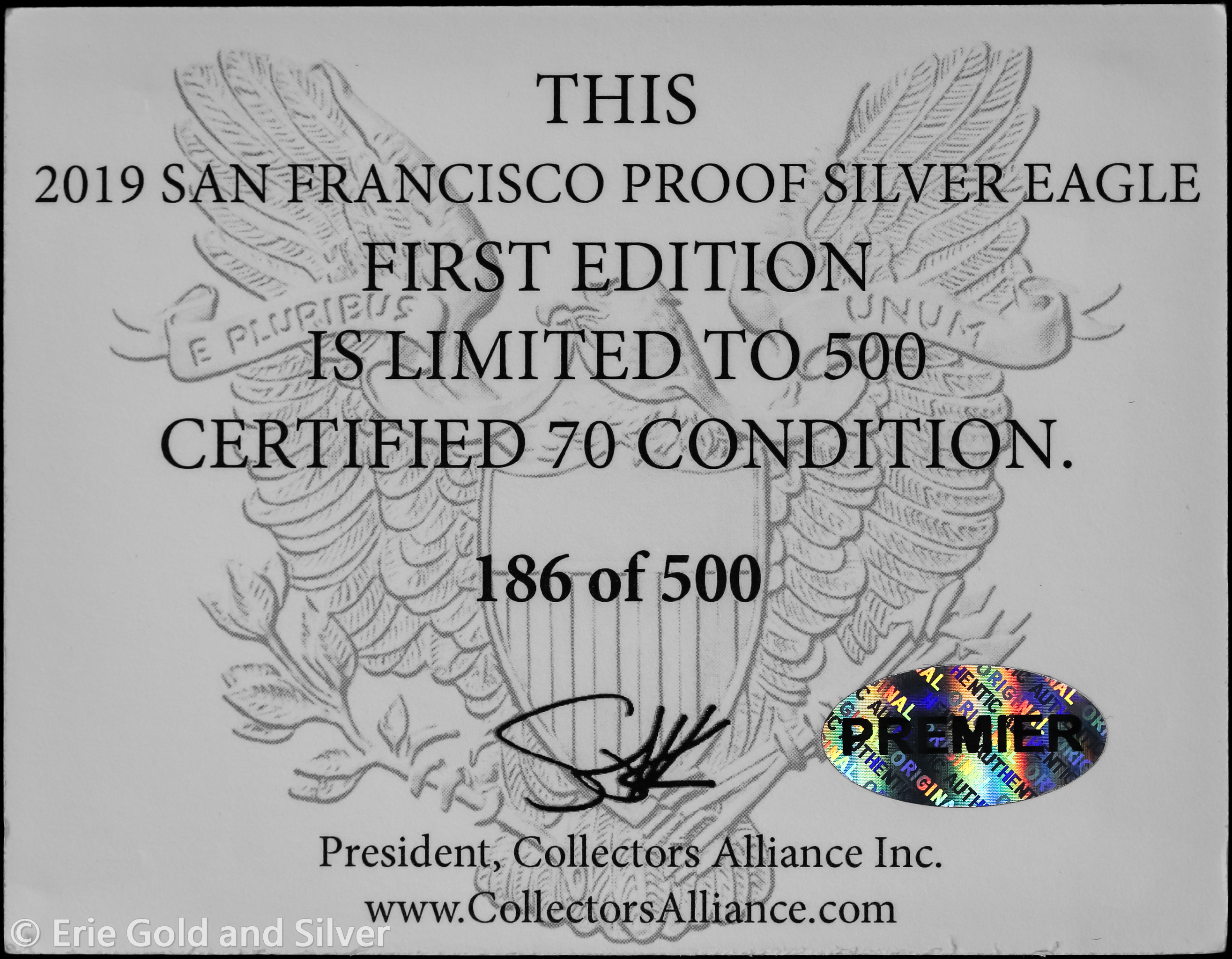 2019-W Proof American Silver Eagle with COA PCGS PR 70 DCAM