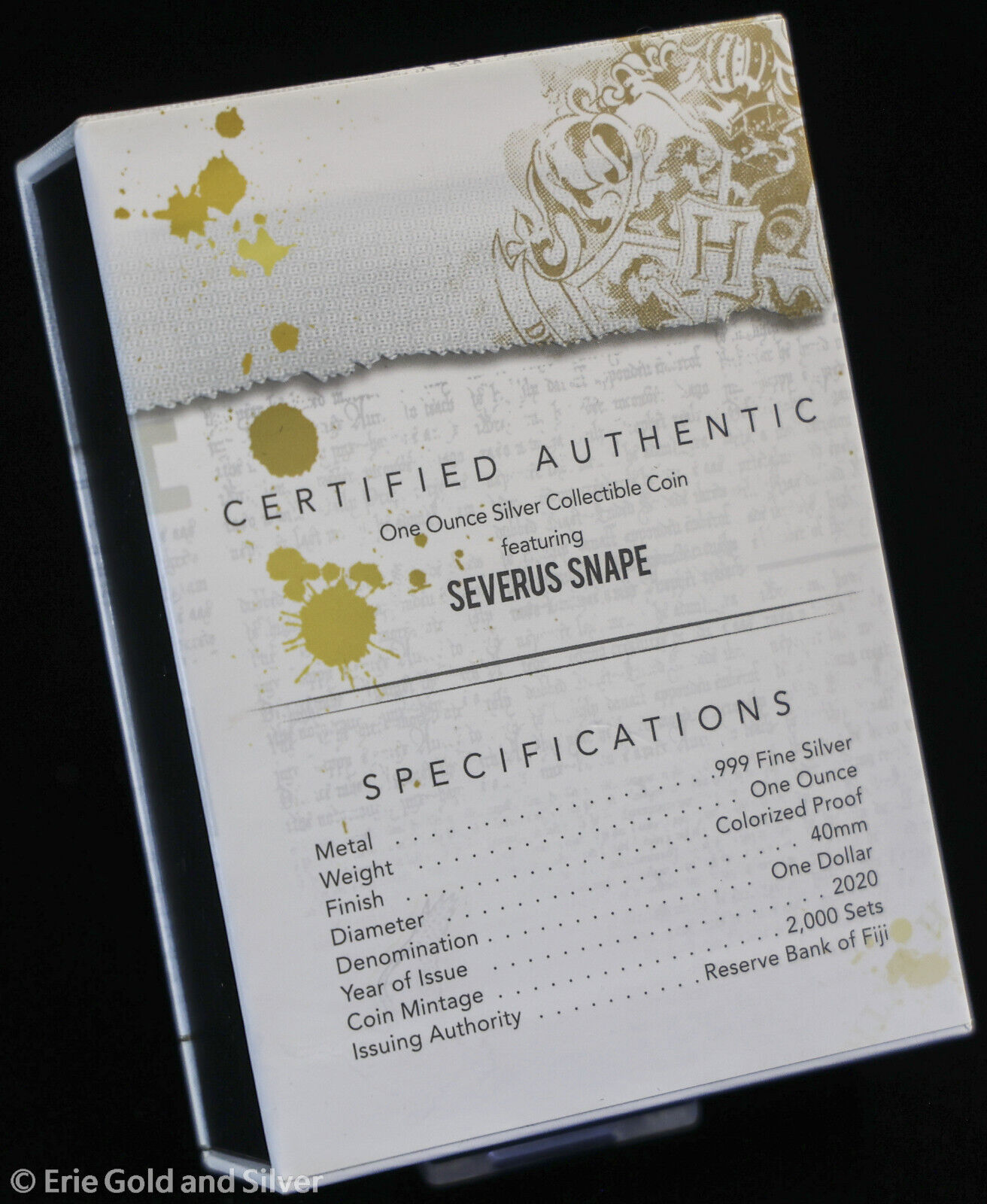 For sale is a 2020 $1 Fiji 1oz Silver Harry Potter Severus Snape OGP BOX ONLY. NO COINS. View pictures for details and condition, the item pictured is the exact item you will receive. Feel free to contact us with any questions.