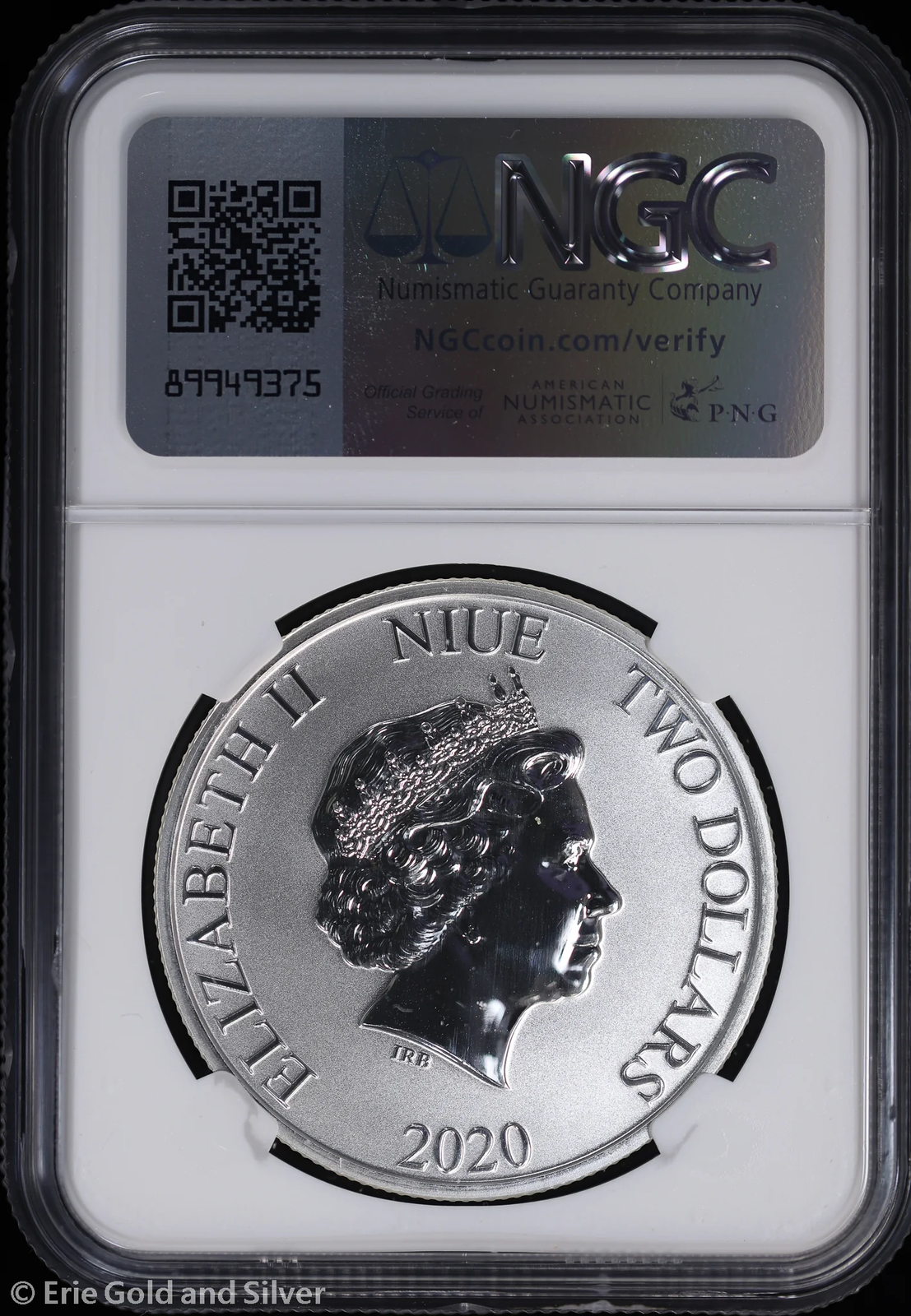 2020 $2 Niue Star Wars 1 oz Silver Boba Fett NGC MS 70 BU Uncirculated Unc