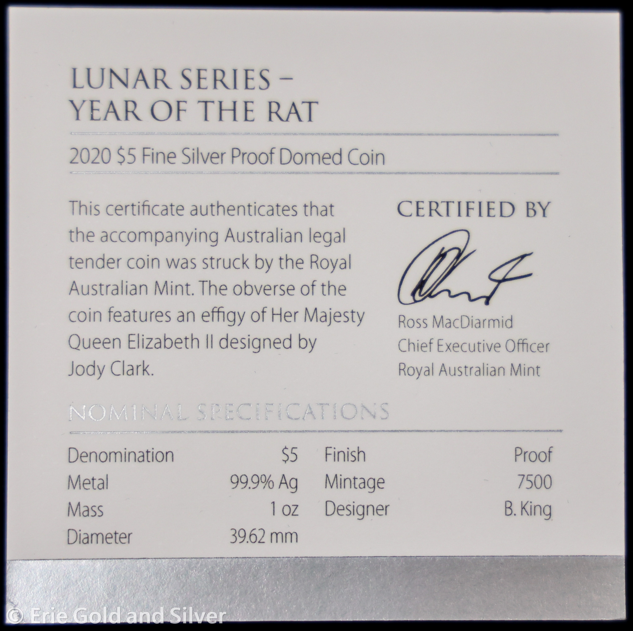 For sale is a 2020 $5 Australia Year of the Rat 1 oz Silver Proof Domed Coin in OGP.