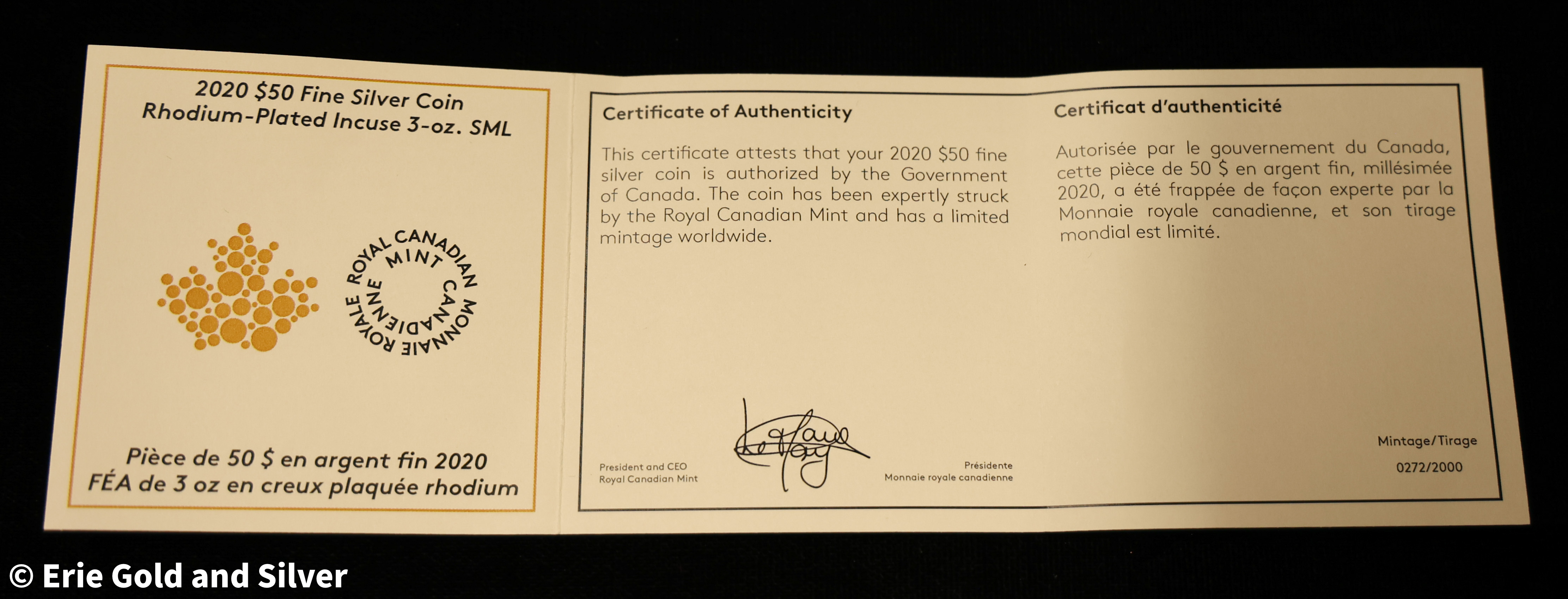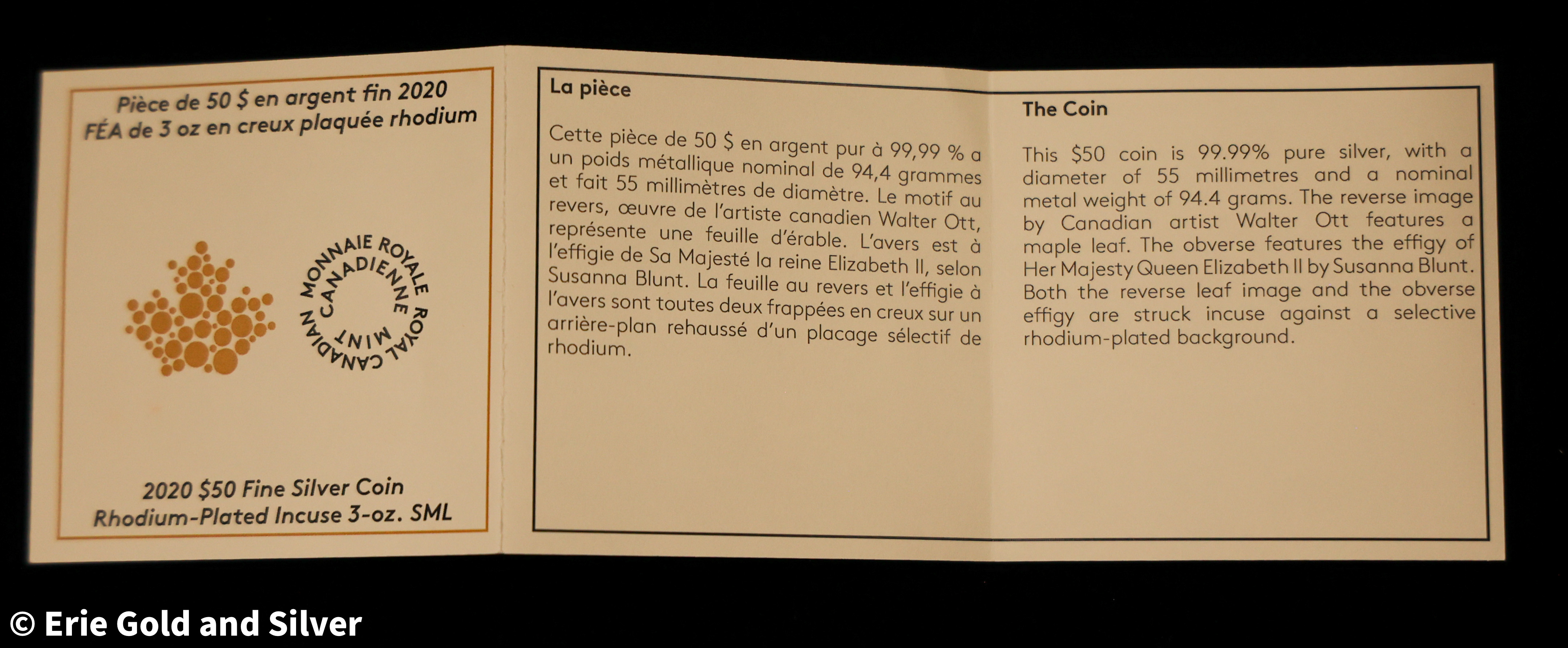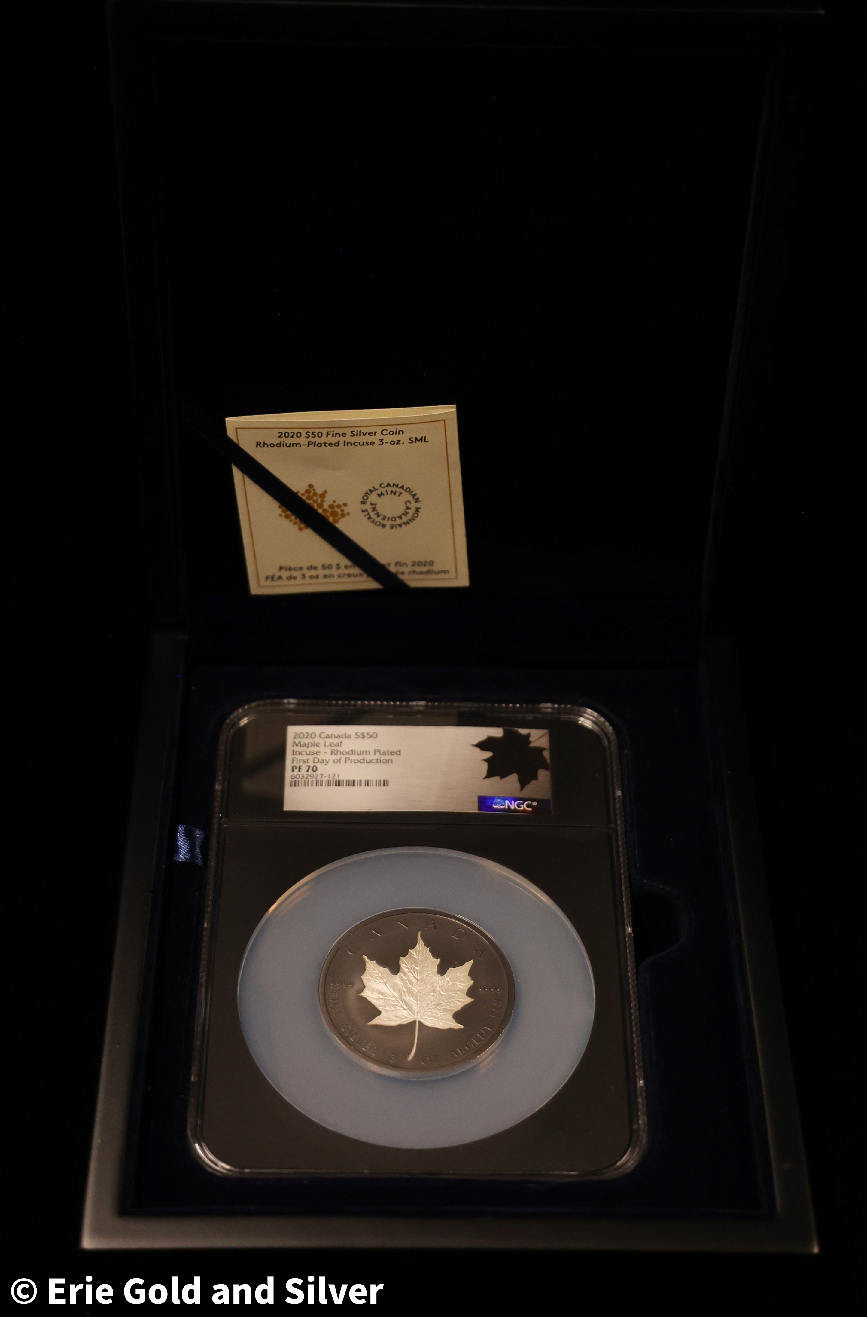 For sale is a 2020 Canadian $50 Incuse 3 oz Silver Maple Leaf NGC PF70 FDOP with Box