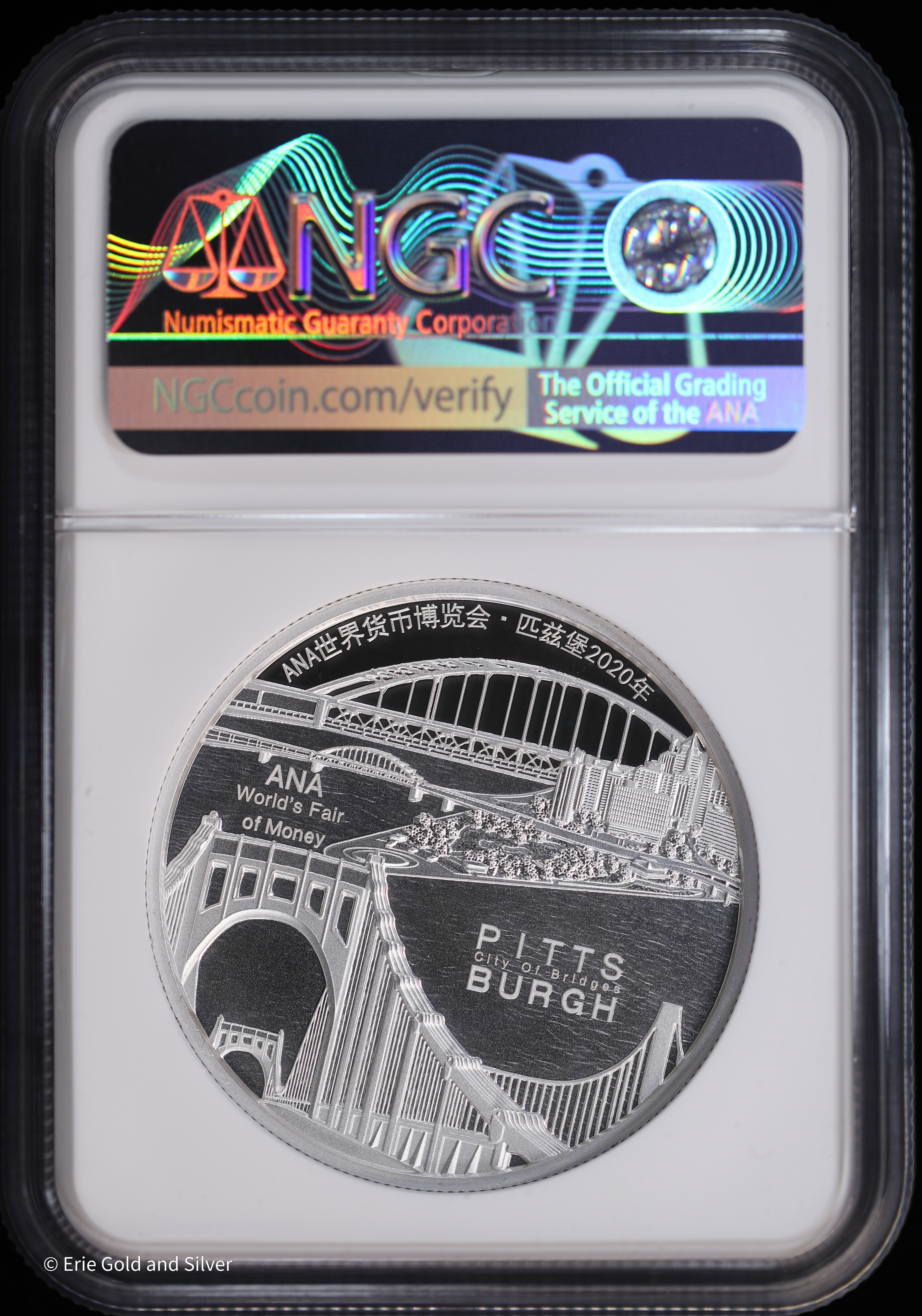 For sale is a 2020 China 50g Silver Panda ANA World's Fair of Money COVID-19 Emergency Cancellation First Date of Issue Mint Medal. Graded / Certified by NGC at PF 70 Ultra Cameo. Signed by Tong Fang, Designer.