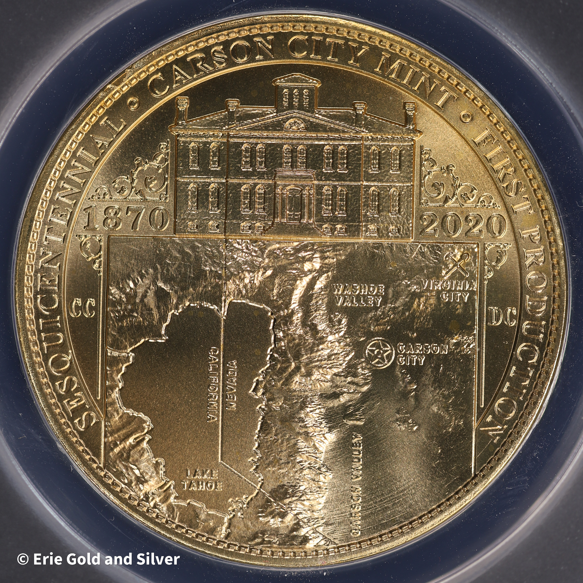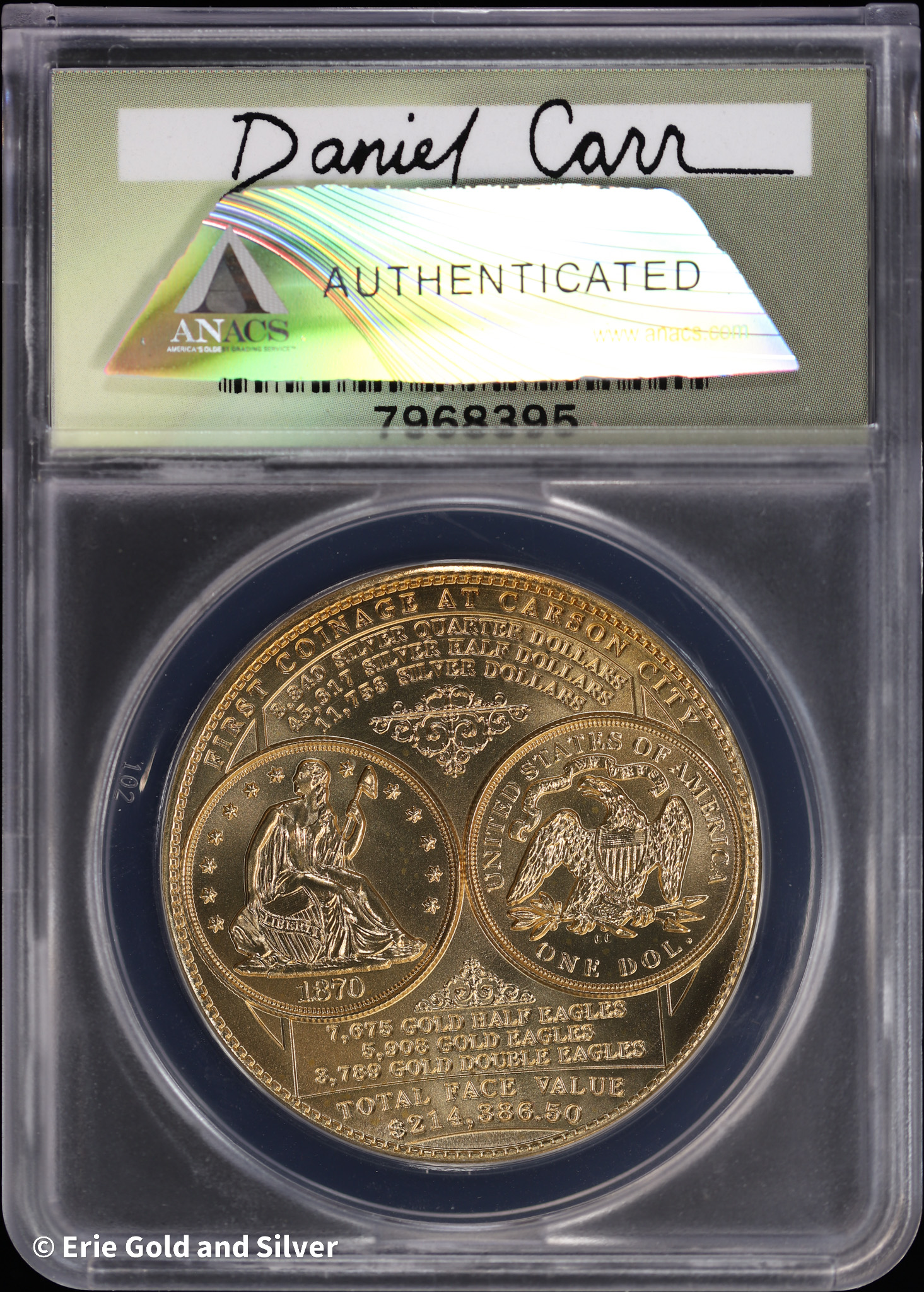 2020 Dan Carr Moonlight Mint Carson City Mint Sesquicentennial Brass Medal ANACS MS 69