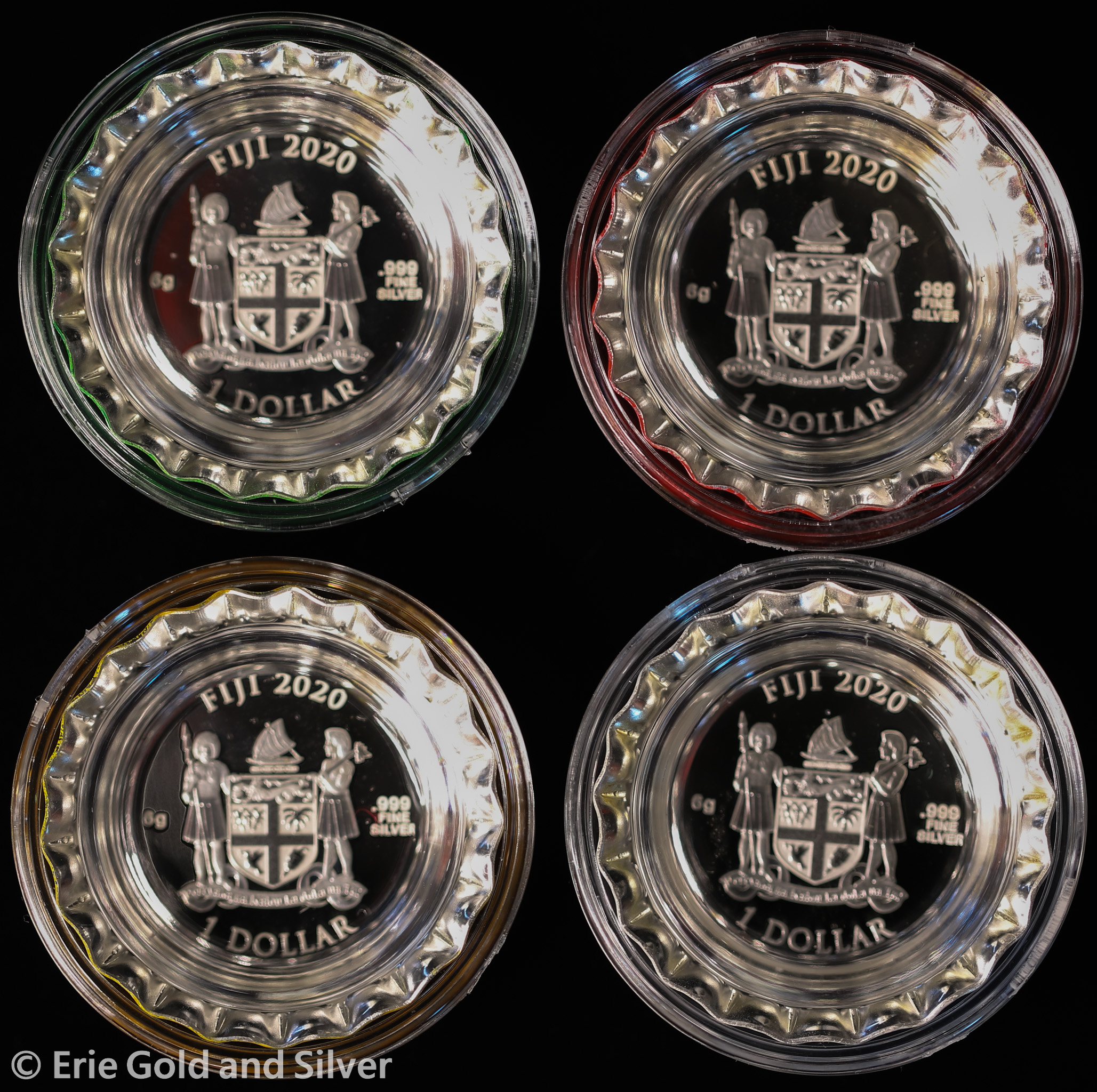 2020 Fiji Coca-Cola 6 g Silver Bottle Cap Set of 4 in Display Tin