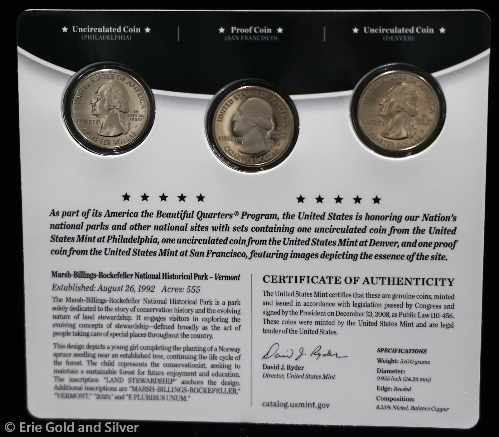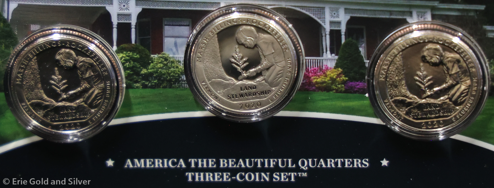 2020 P D S 25c ATB Marsh-Billings-Rockefeller Quarters 3 Coin Set | BU Proof