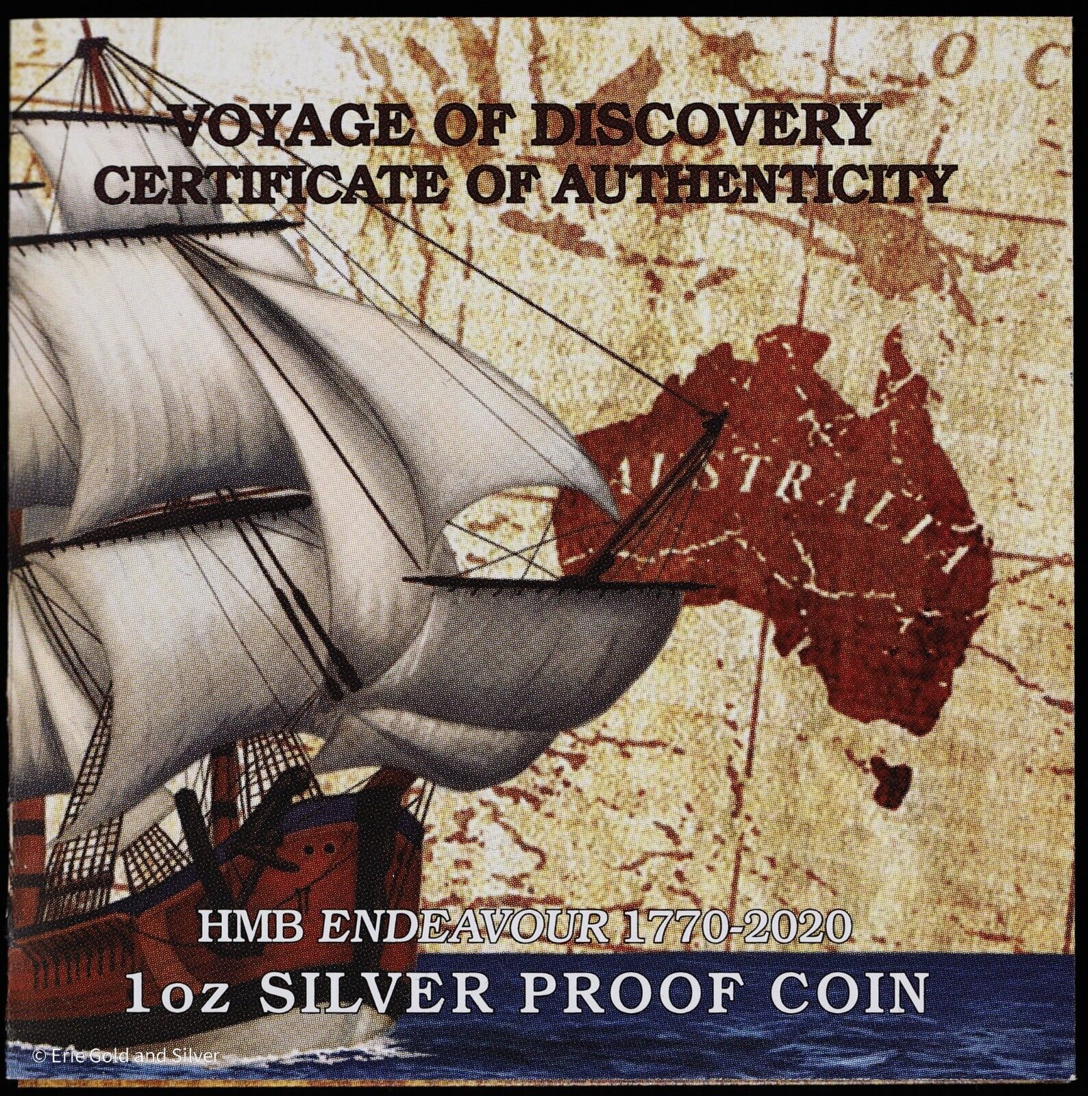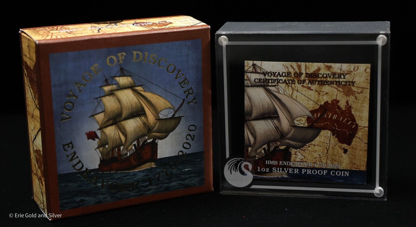 2020 Voyage of Discovery HMB Endeavor 1770-2020 1 oz Silver Proof Coin in Box