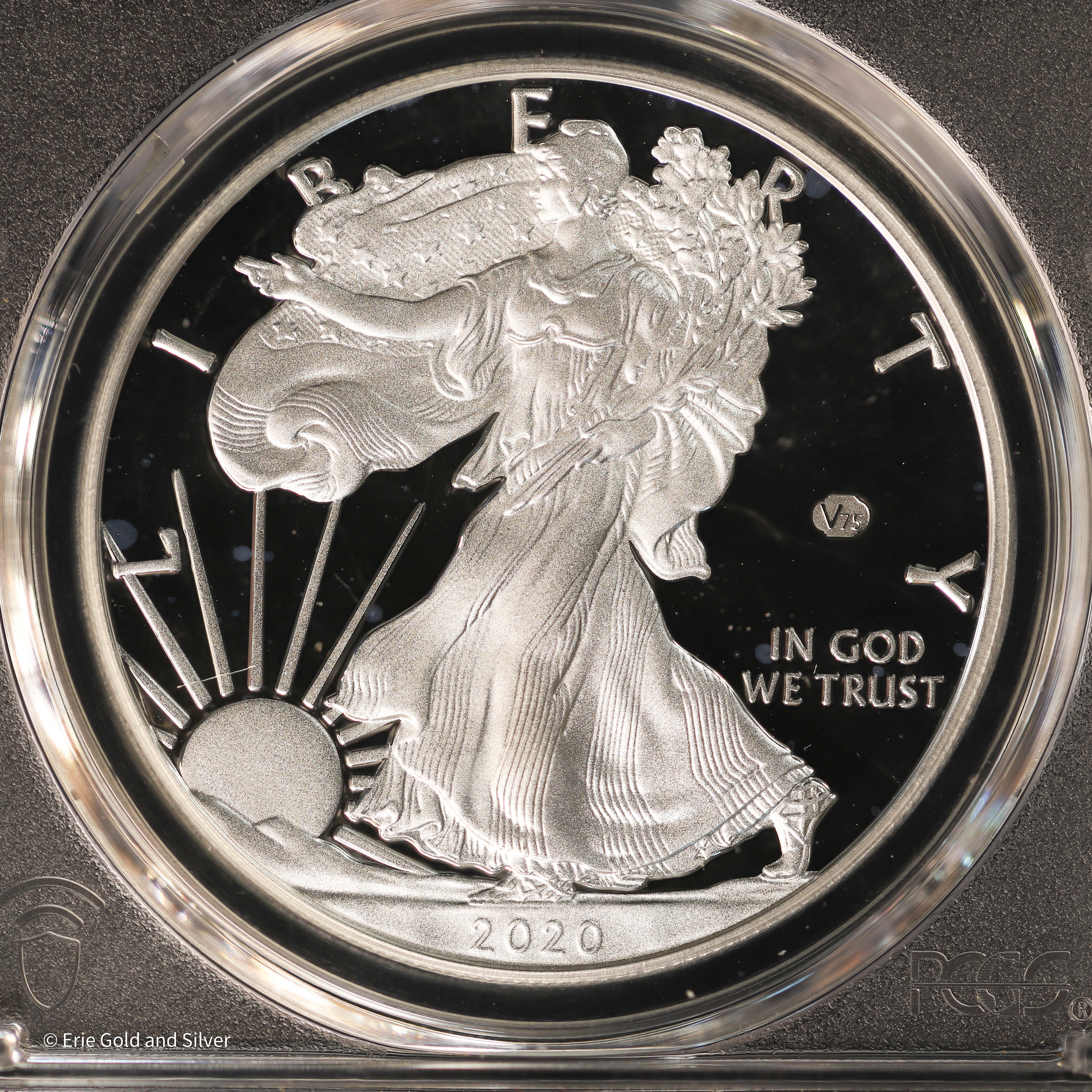 The 2020-W American Silver Eagle V75 Privy Proof was issued by the U.S. Mint to honor the 75th anniversary of the end of World War II. Struck at the West Point Mint in 1 oz of .999 fine silver, it features the classic Walking Liberty design with a distinctive “V75” privy mark on the obverse. With a limited mintage of just 75,000 coins, each bears a stunning proof finish and represents one of the rarest and most sought-after releases in the Silver Eagle series.